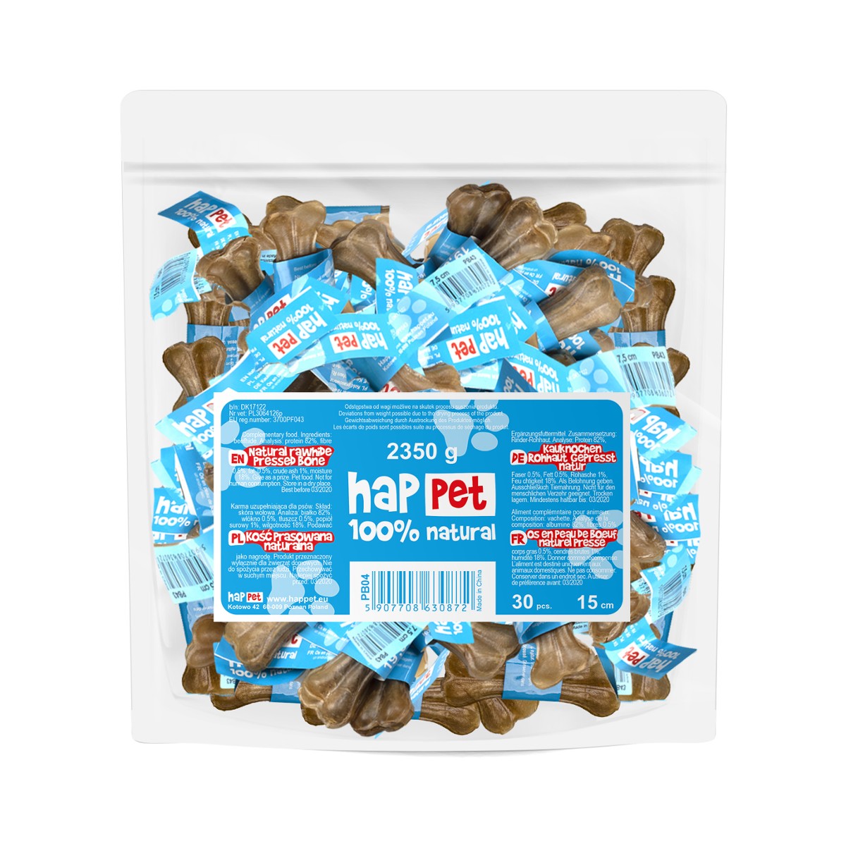 Kość prasowana Happet to idealny przysmak dla Twojego psa. Wykonana z rozgotowanej i sprasowanej skóry wołowej, zapewnia długotrwałe zajęcie oraz doskonałą zabawę.