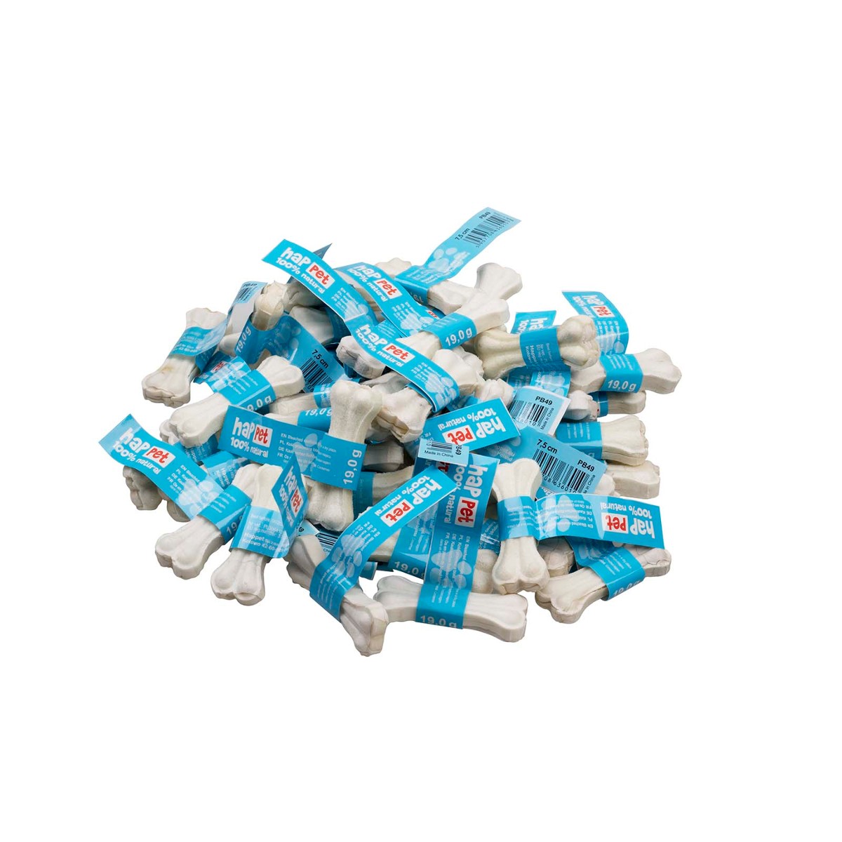 Kości Happet to wyjątkowe przysmaki, które powstały z rozgotowanej skóry wołowej. Po wysuszeniu i sprasowaniu, zyskują twardą formę, co sprawia, że są nie tylko smaczne, ale również trwałe. To idealna zabawka, która zapewni Twojemu psu długie godziny zajęcia.