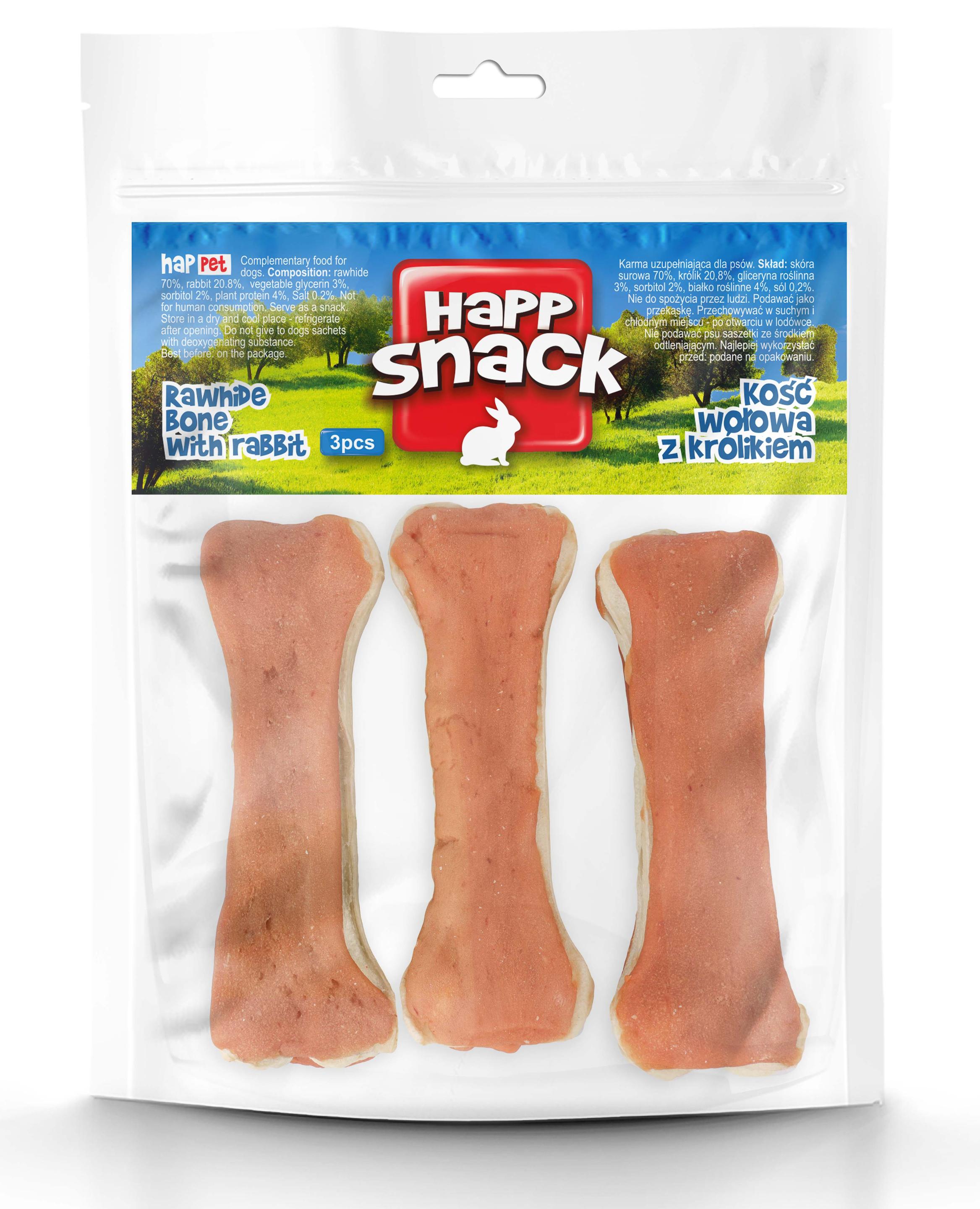 Gryzienie to naturalna potrzeba psa, a połączenie chrupiącej skóry wołowej z delikatnym królikiem dostarcza wyjątkowych doznań smakowych oraz długotrwałej przyjemności żucia. W opakowaniu znajdują się 3 sztuki kości o wymiarach 10 x 3 cm, co czyni je idealnym wyborem dla małych i średnich psów.