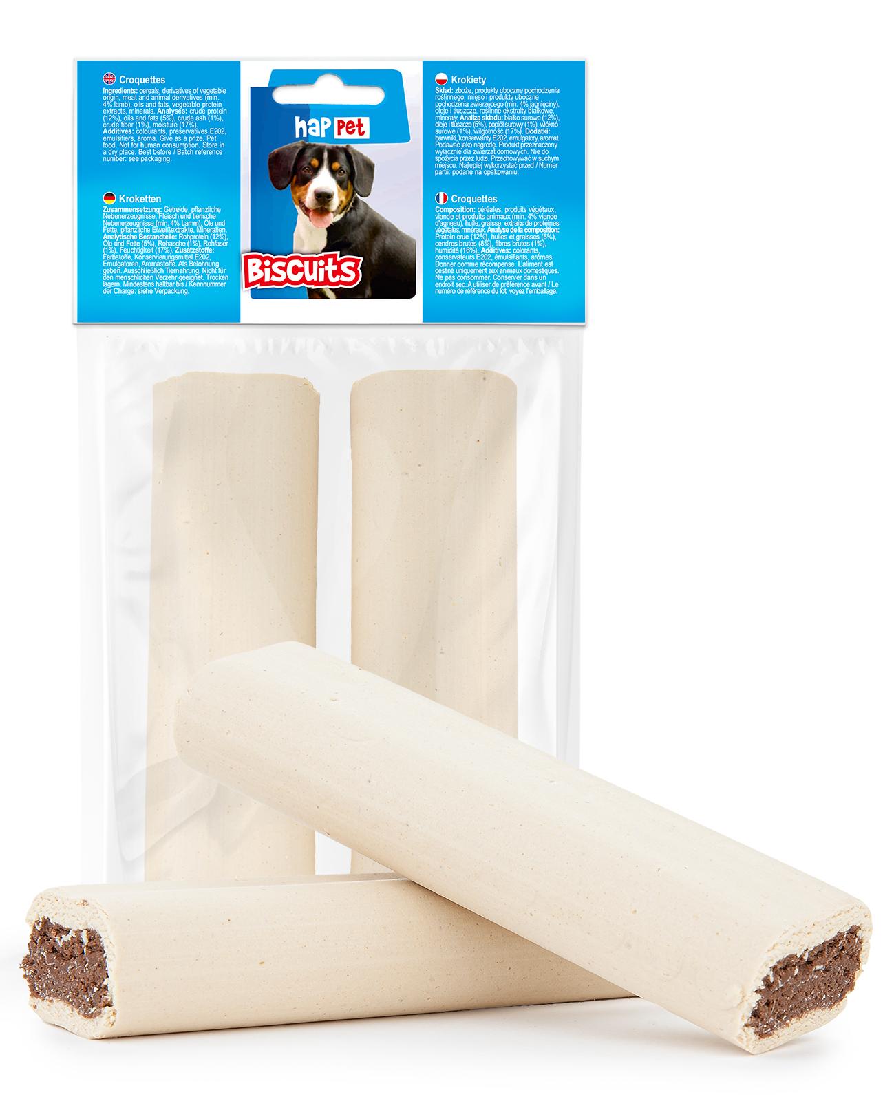 Te krokiety będą doskonałym wyborem, jeśli szukasz smakołyku, który zaspokoi apetyt Twojego psa na dłużej. Mniejsze psy również będą mogły je zjadać, zarówno w całości, jak i po podzieleniu na kawałki.