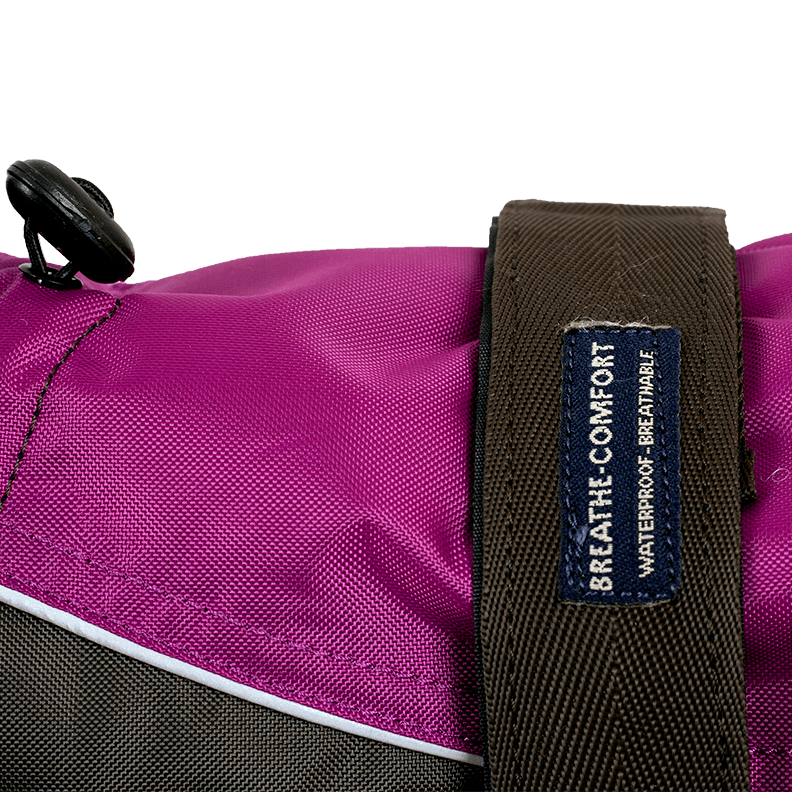 Rozmiar L (55 cm) jest odpowiedni dla średnich psów. Kurtka jest dostępna w kolorze brązowo-fioletowym, co dodaje jej stylowego wyglądu.