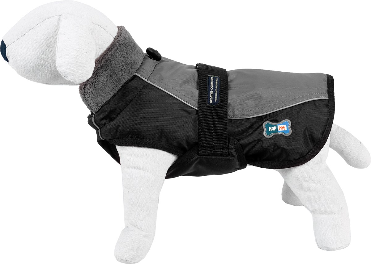 Wykonana z oddychającego materiału, kurtka gwarantuje ciepło i komfort. Jej kształt płaszcza skutecznie osłania najbardziej narażone na zimno części ciała. Dodatkowo, materiał jest wodoodporny, co sprawia, że nawet w deszczowe dni Twój pies będzie suchy.
