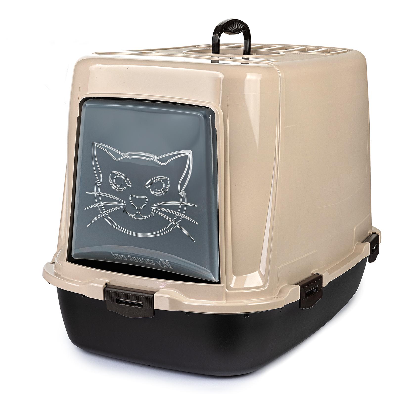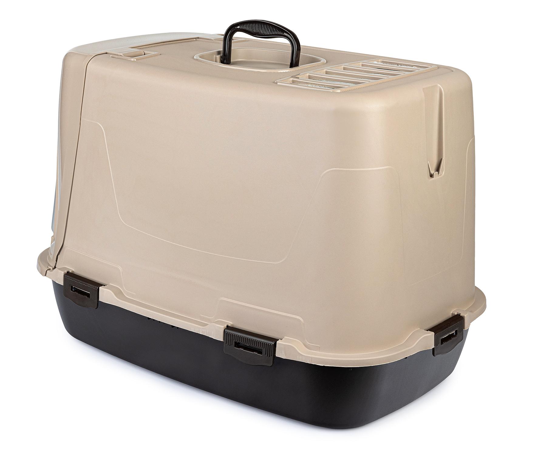 Kuweta została wykonana z trwałego materiału, który jest bezpieczny dla zwierząt. Jej wymiary to 60 cm długości, 38,5 cm szerokości i 40,5 cm wysokości, co sprawia, że jest odpowiednia dla wielu ras kotów. Kolorystyka beżowo-brązowa doskonale wpasuje się w różne wnętrza.