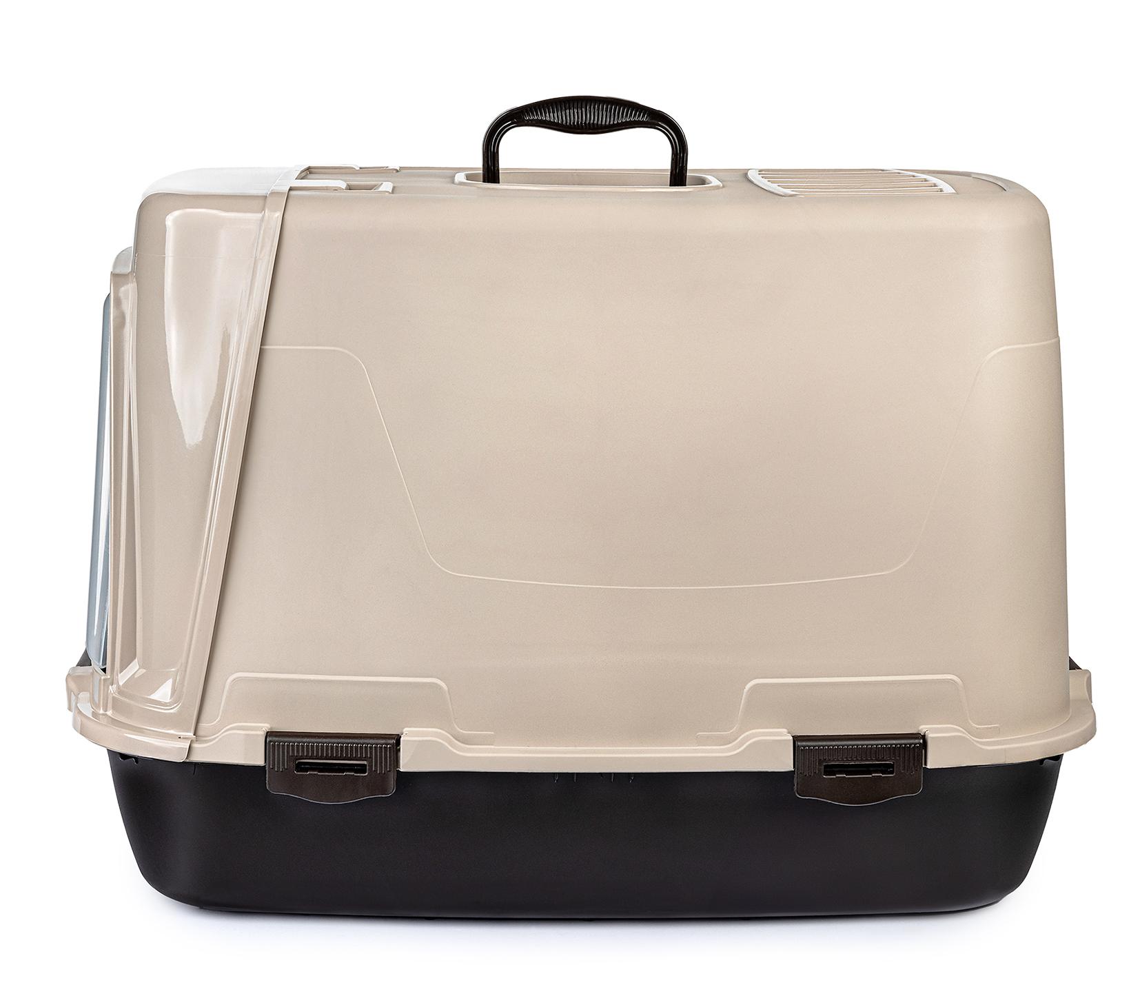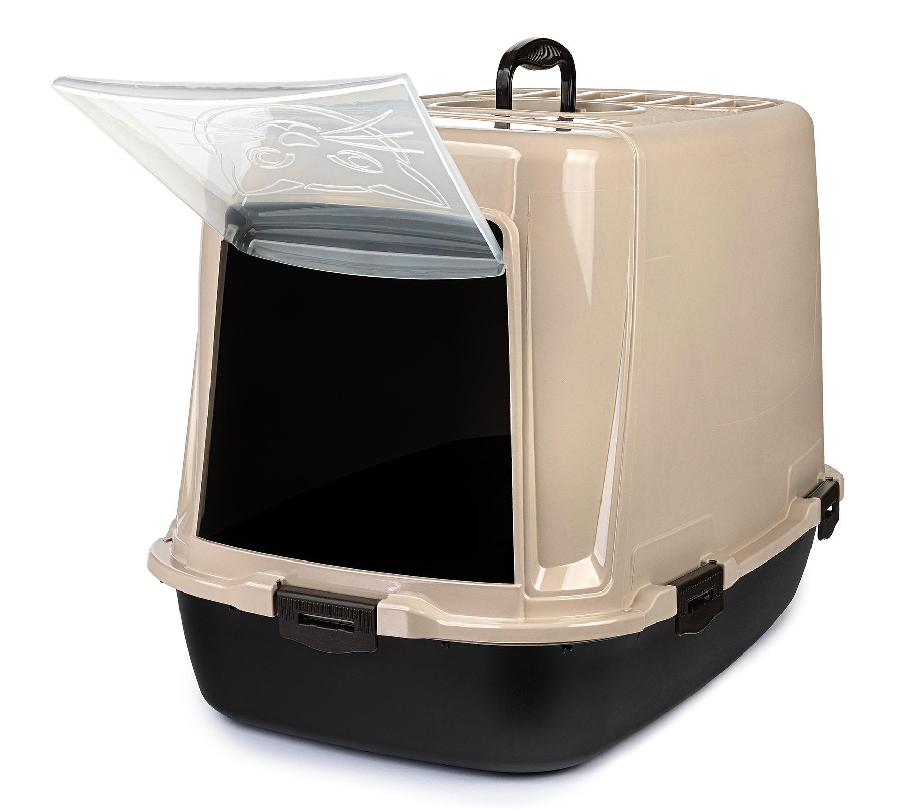 Kuweta Advance to praktyczne rozwiązanie, które zapewnia kotu komfort i prywatność podczas korzystania z toalety. Zabudowana konstrukcja skutecznie zapobiega rozsypywaniu się żwirku, nawet podczas intensywnego kopania. Drzwiczki na zawiasach oraz wygodna rączka ułatwiają transport i codzienne użytkowanie. Dodatkowo, górna część kuwety jest łatwo zdejmowana, co znacząco upraszcza czyszczenie.