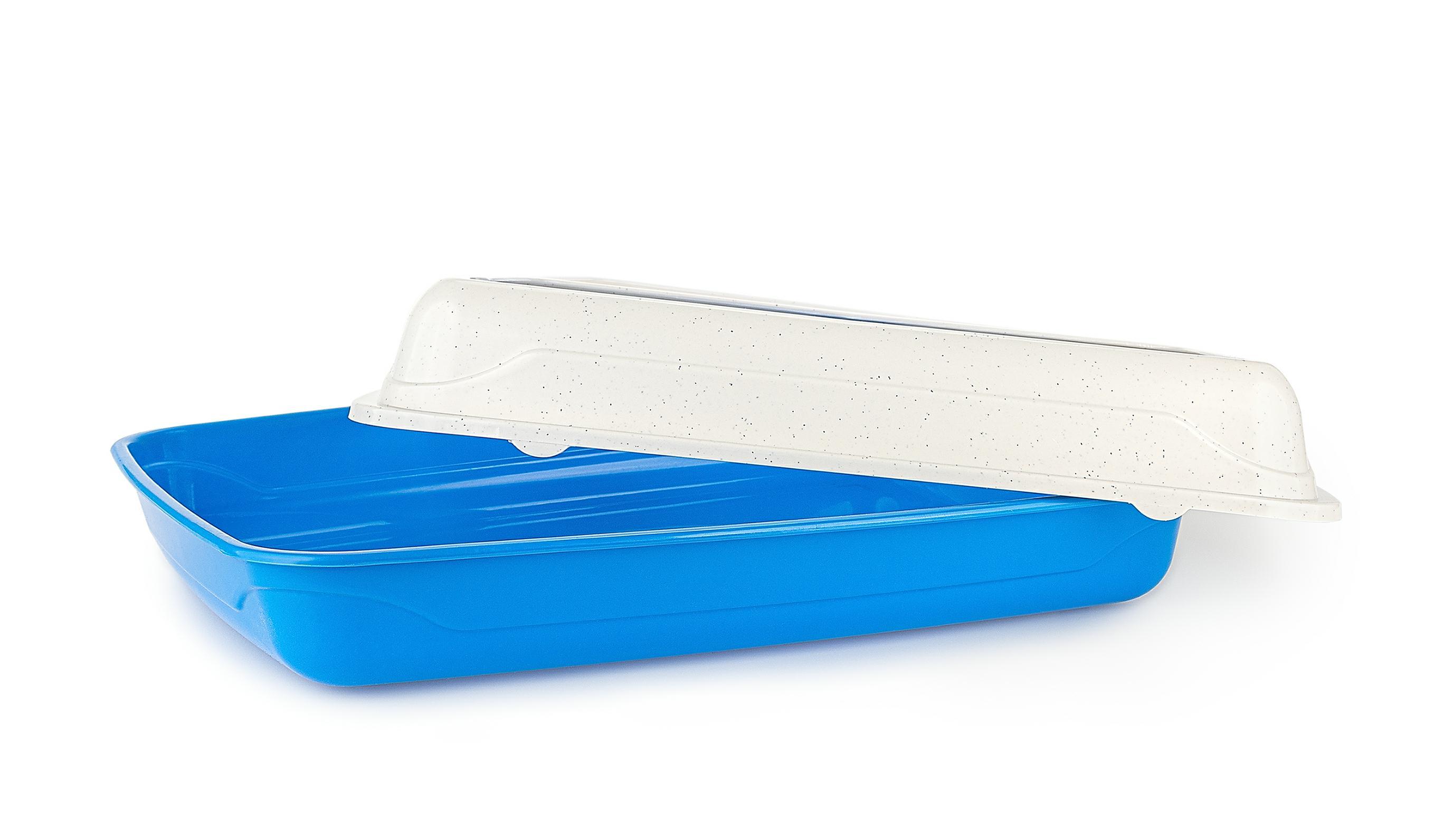 Kuweta z ramką, która skutecznie zapobiega rozsypywaniu się żwirku, utrzymując czystość wokół kociej toalety. Dzięki specjalnej konstrukcji, żwirek nie wydostaje się na zewnątrz, co ułatwia dbanie o porządek w domu.