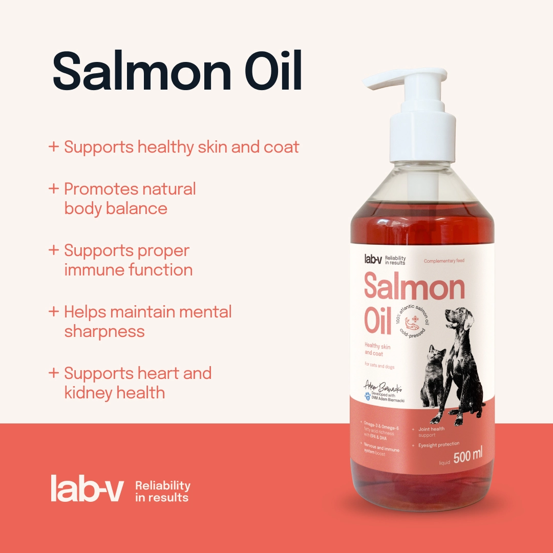Lab-v Olej z Łososia – naturalne wsparcie zdrowia i odporności psów oraz kotów