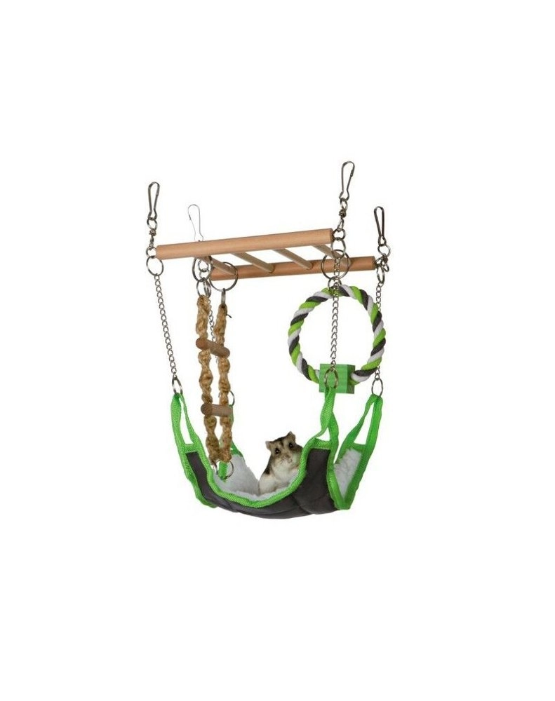 Dobrym pomysłem jest zainwestowanie w miękkie i lekkie opcje jak hamaki lub mostki wiszące – sprawdź na przykład hamak Dla Chomika I Myszy od marki Trixie.