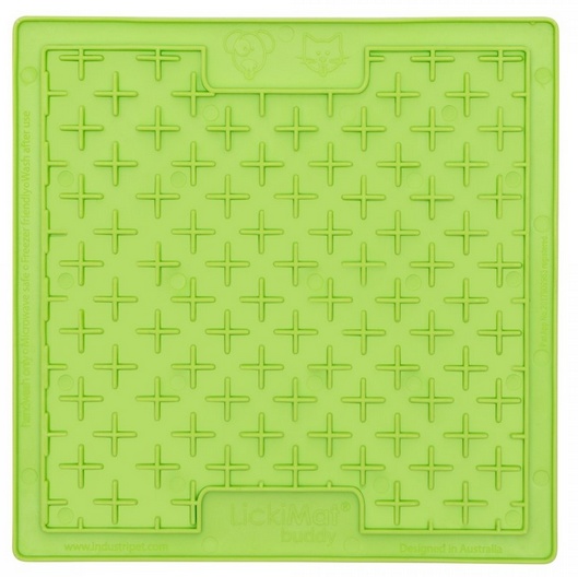 LickiMat Buddy ma labiryntowe kieszenie, idealne do serwowania przysmaków, takich jak masło orzechowe czy rozmoczone ciasteczka. Możesz ją również mrozić, co w upalne dni zapewni Twojemu zwierzakowi dłuższą i orzeźwiającą zabawę.
