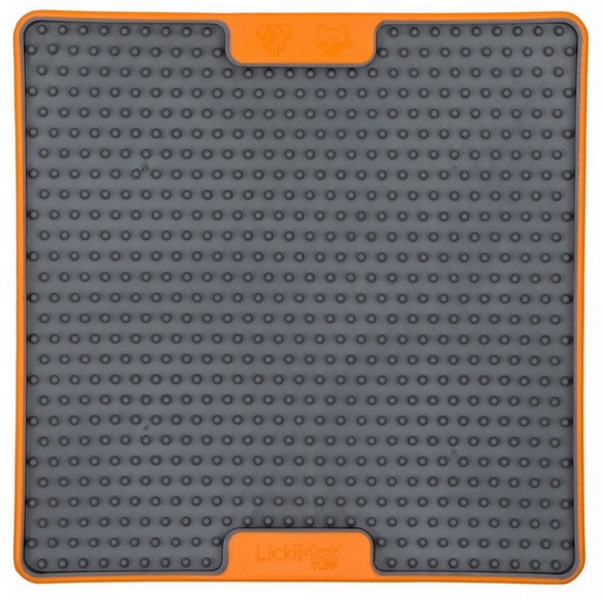 LickiMat Soother Deluxe/Tuff Jeżyk twardy pomarańczowy to doskonałe rozwiązanie, które pomoże Twojemu zwierzakowi w walce z nudą i stresem. Dzięki tej macie możesz poprawić samopoczucie swojego psa lub kota, a także wspierać ich zdrowie. Rozsmarowując ulubione przysmaki na macie, tworzysz interaktywną zabawę, która angażuje pupila i dostarcza mu radości. W upalne dni możesz zamrozić smakołyki, co zapewni dłuższą i orzeźwiającą rozrywkę.