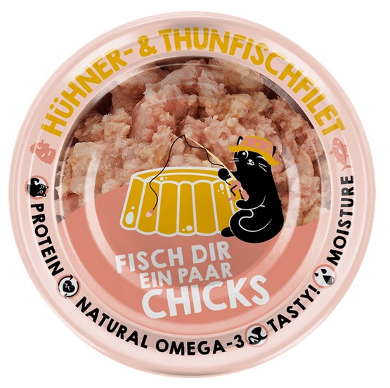 Skład: Bulion z tuńczyka i kurczaka 56,5%, filet z tuńczyka 38%, filet z kurczaka 4%, skrobia z tapioki 1,5%.
