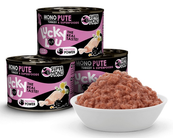 Lucky Lou SuperMono Indyk to pełnoporcjowa karma dla kotów, która z pewnością przypadnie do gustu Twojemu pupilowi. Wykonana z wysokiej jakości składników, nie zawiera zbóż ani cukru, co czyni ją idealnym wyborem dla kocich smakoszy, w tym tych z wrażliwym brzuszkiem.
