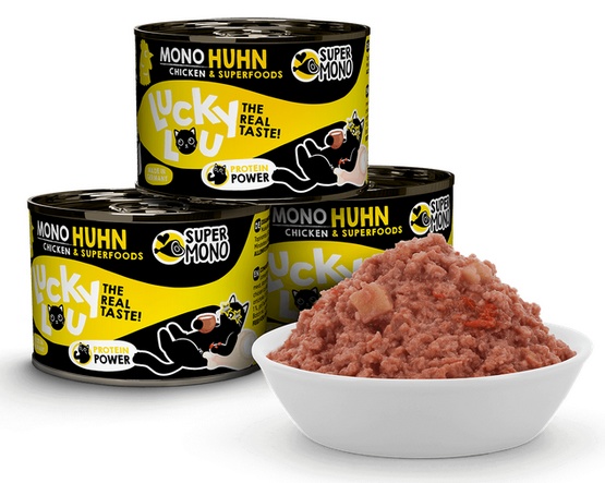 Lucky Lou SuperMono Kurczak to pełnoporcjowa mokra karma dla kotów, która zadowoli nawet najbardziej wymagające kocie podniebienia. Dzięki wysokiej jakości składnikom oraz braku zbóż i cukru, jest idealnym wyborem dla kotów z wrażliwym brzuszkiem.