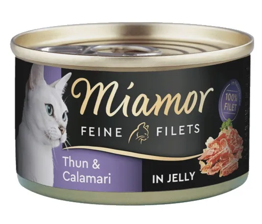 Miamor Feine Filets Dose Thunfisch & Calamari to idealne rozwiązanie dla wymagających kotów. Oferuje delikatne filety z tuńczyka i kalmarów w apetycznej galaretce, które z pewnością zachwycą Twojego pupila.