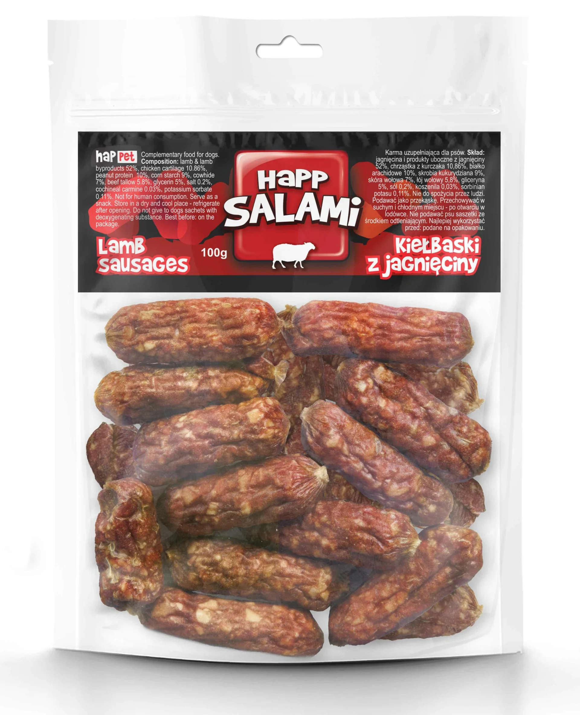 Salami jagnięce kiełbaski 500gPodaruj swojemu psu wyjątkowy przysmak w postaci salami jagnięcego! Te małe kiełbaski to idealna przekąska, która zachwyci Twojego pupila intensywnym aromatem i autentycznym wyglądem.Salami jagnięce zawiera aż 52% jagnięciny,…