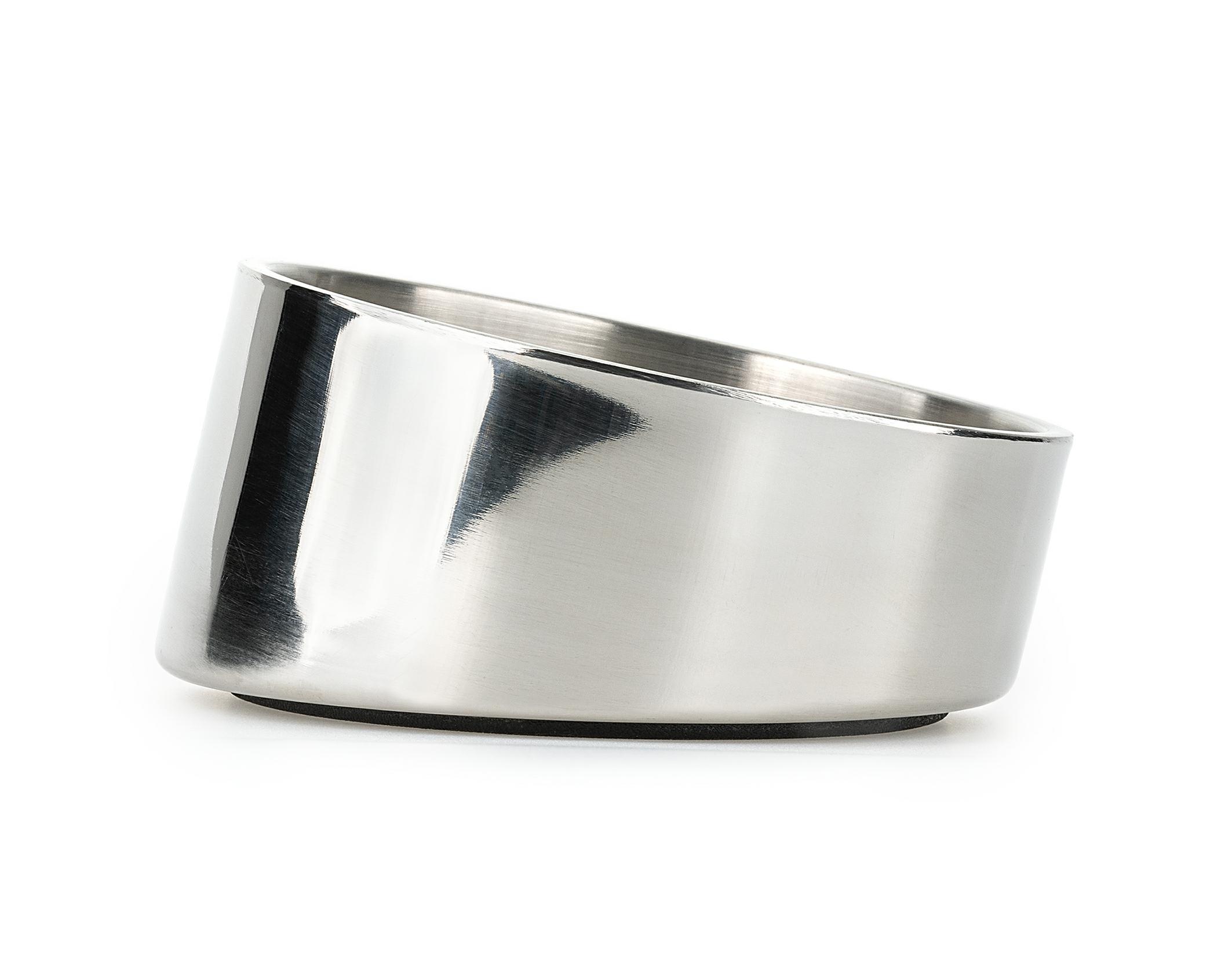 Podwójne ścianki miski sprawiają, że waży ona więcej niż standardowa miska i trudniej jest ją przesunąć czy przewrócić. Gumowa podstawka dodatkowo stabilizuje produkt i zwiększa wygodę użytkowania. Podwójne ścianki utrzymują również temperaturę ciepłych posiłków. Miska jest wykonana ze stali nierdzewnej, odporna na uszkodzenia i łatwa w czyszczeniu.