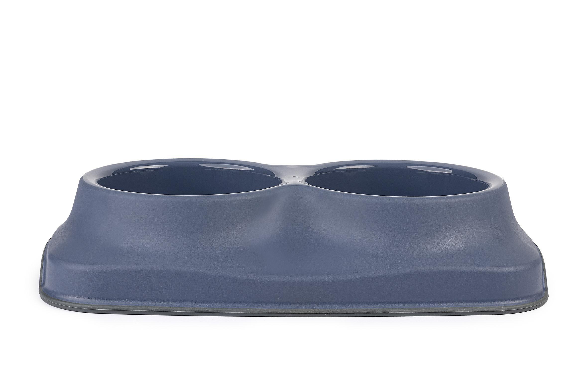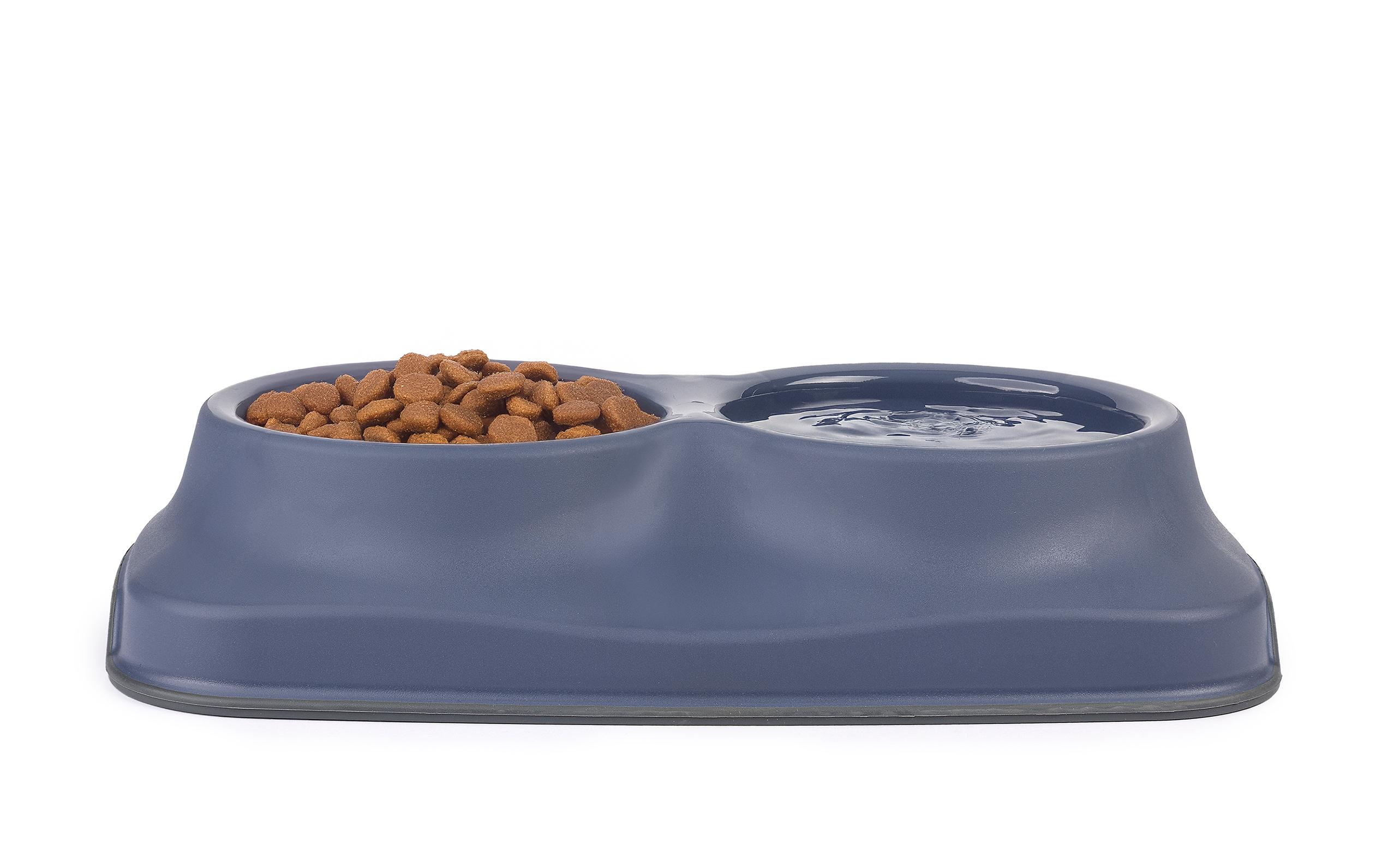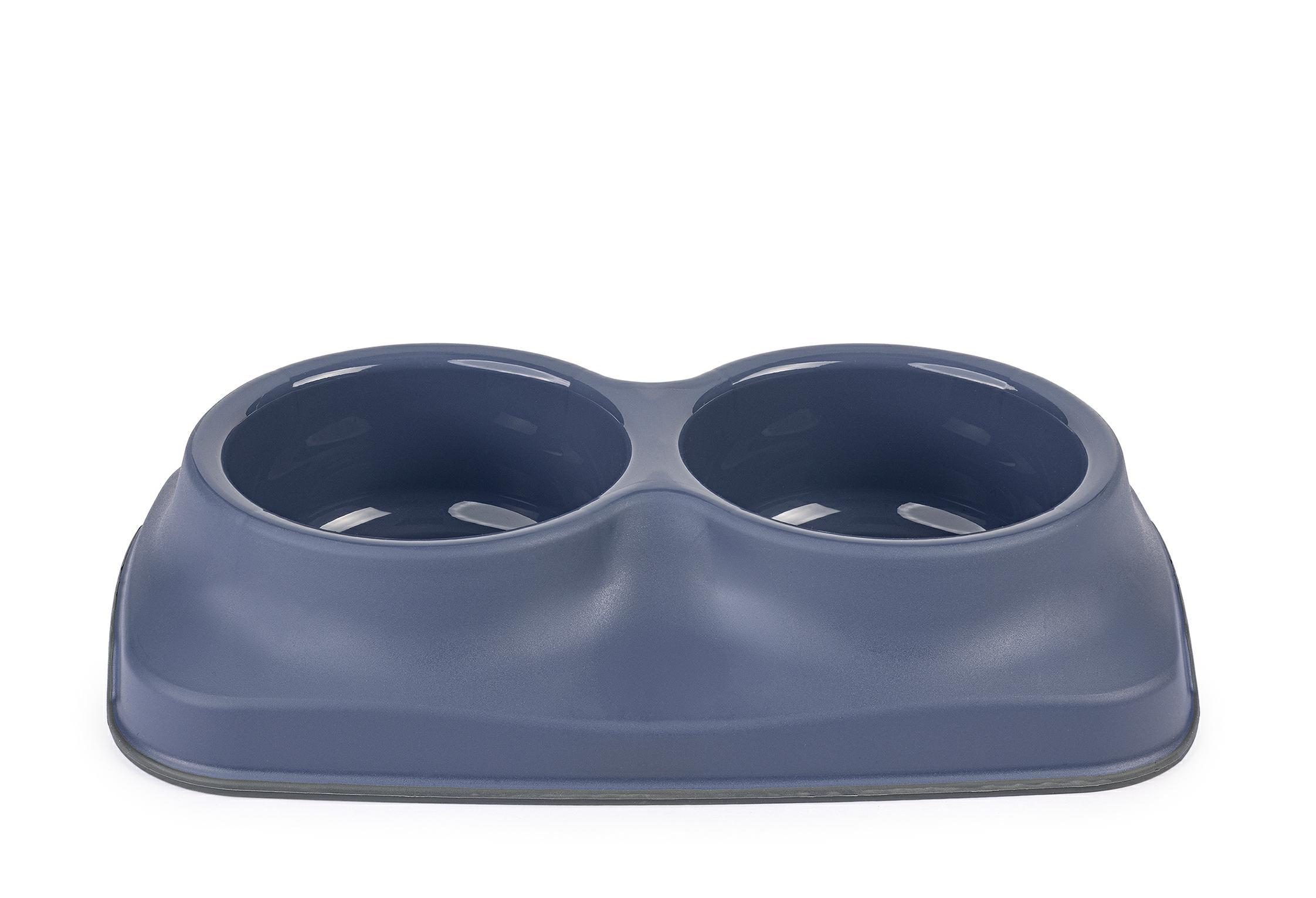 Wymiary miski to 2 x 0,4 L, co pozwala na jednoczesne podawanie jedzenia i wody. Miska wykonana jest z trwałego plastiku, a dostępna jest w trzech kolorach, w tym w niebieskim.