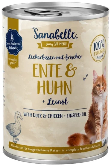 Sanabelle Kaczka, kurczak i olej lniany puszka 400g • Kod: mls-17437 • EAN: 4015598020954 • Kategoria: Mokra karma dla kotów Sanabelle. Chcę to — kup teraz