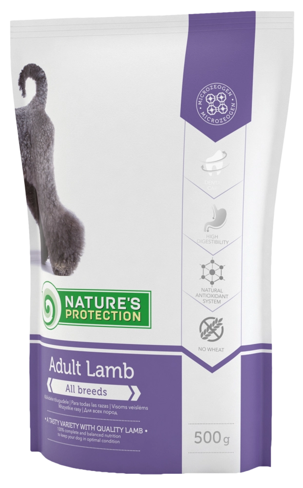 Nature's Protection Lamb Adult All Breeds 500g to pełnoporcjowa karma dla dorosłych psów wszystkich ras, zalecana od 1 roku życia. Zawiera 38% mięsa jagnięcego, co czyni ją doskonałym źródłem białka. Karma jest starannie skomponowana, aby zaspokoić potrzeby psów o normalnym poziomie aktywności.
