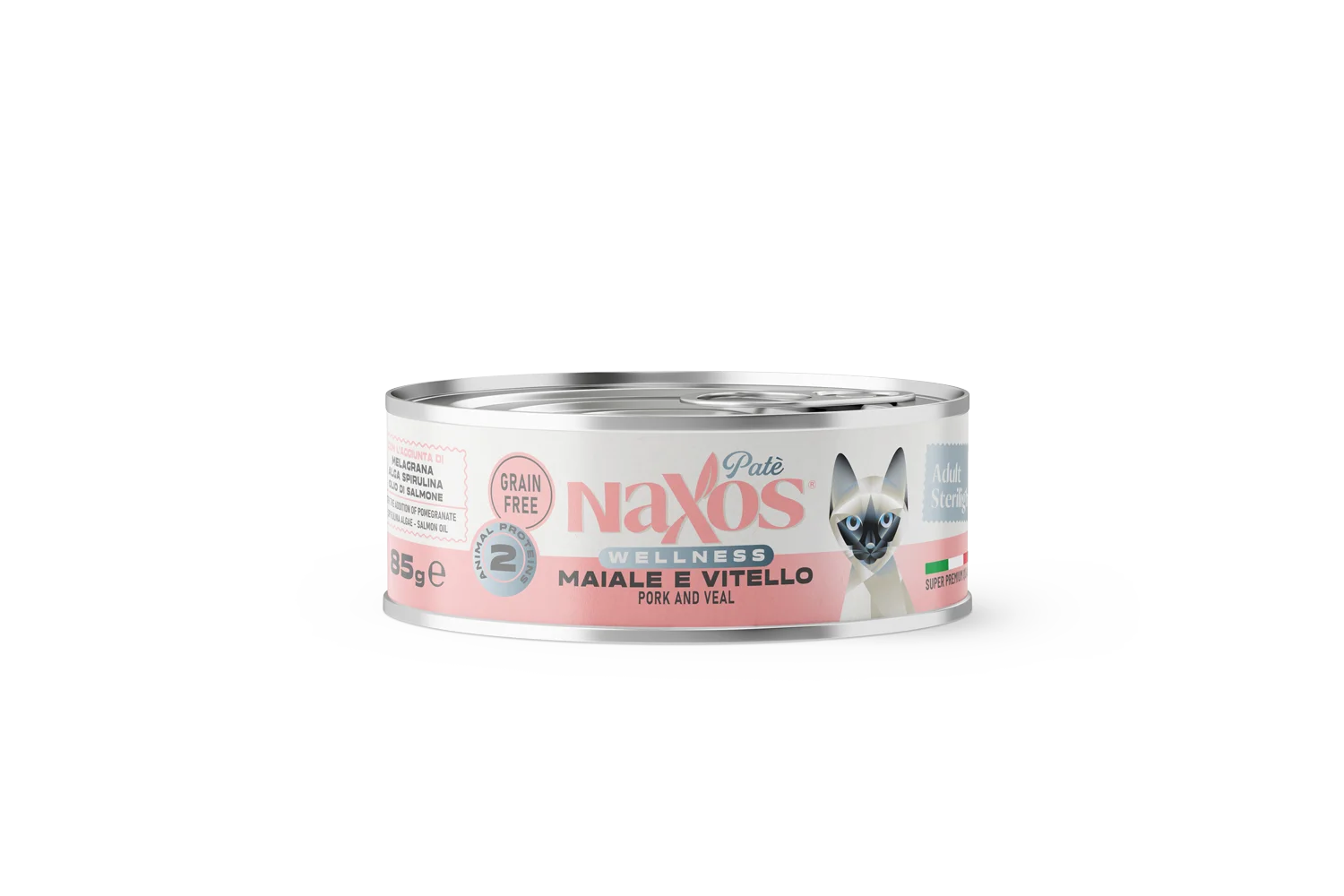 NAXOS CAT STERILIZED Puszka dla kotów sterylizowanych o smaku wieprzowiny i cielęciny 85g • Kod: 38049 • EAN: 8025844314733 • Kategoria: Koty. Skompletuj zamówienie