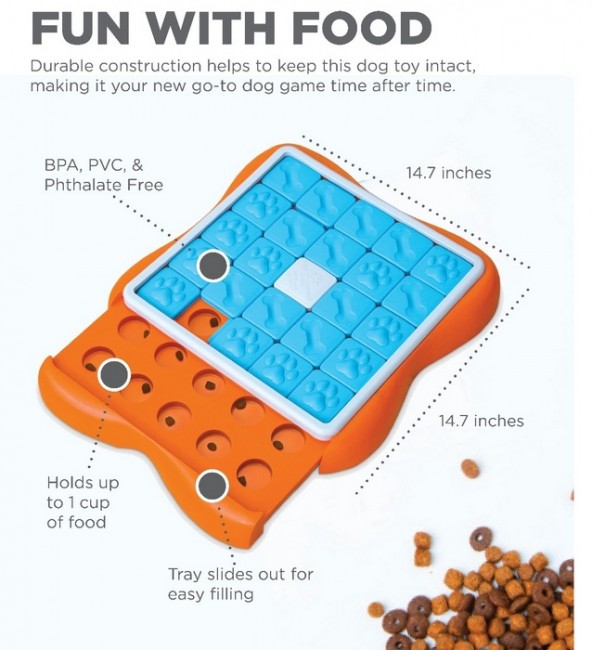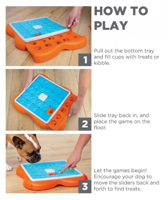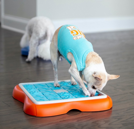 Wystarczy napełnić przegródki ulubionymi przysmakami lub suchą karmą, a następnie zachęcić pupila do zabawy. Węsząc i przesuwając ruchome płytki, pies odblokuje dostęp do nagród. To doskonały sposób na stymulację umysłową, która jest równoważna z 30 minutami aktywności fizycznej!