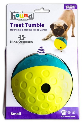 Gra Treat Tumble to doskonały sposób na stymulację umysłu Twojego pupila. Napełnij kulę ulubionymi smakołykami lub suchą karmą, a następnie zachęć psa do odkrywania, jak je zdobyć. To świetna zabawa zarówno w domu, jak i na świeżym powietrzu!