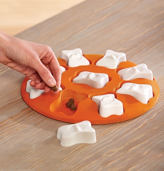 Interaktywna gra dla psów, która zachęca do odkrywania smakołyków! Napełnij 9 przegródek ulubionymi przysmakami lub suchą karmą, a następnie zaproś swojego pupila do zabawy.