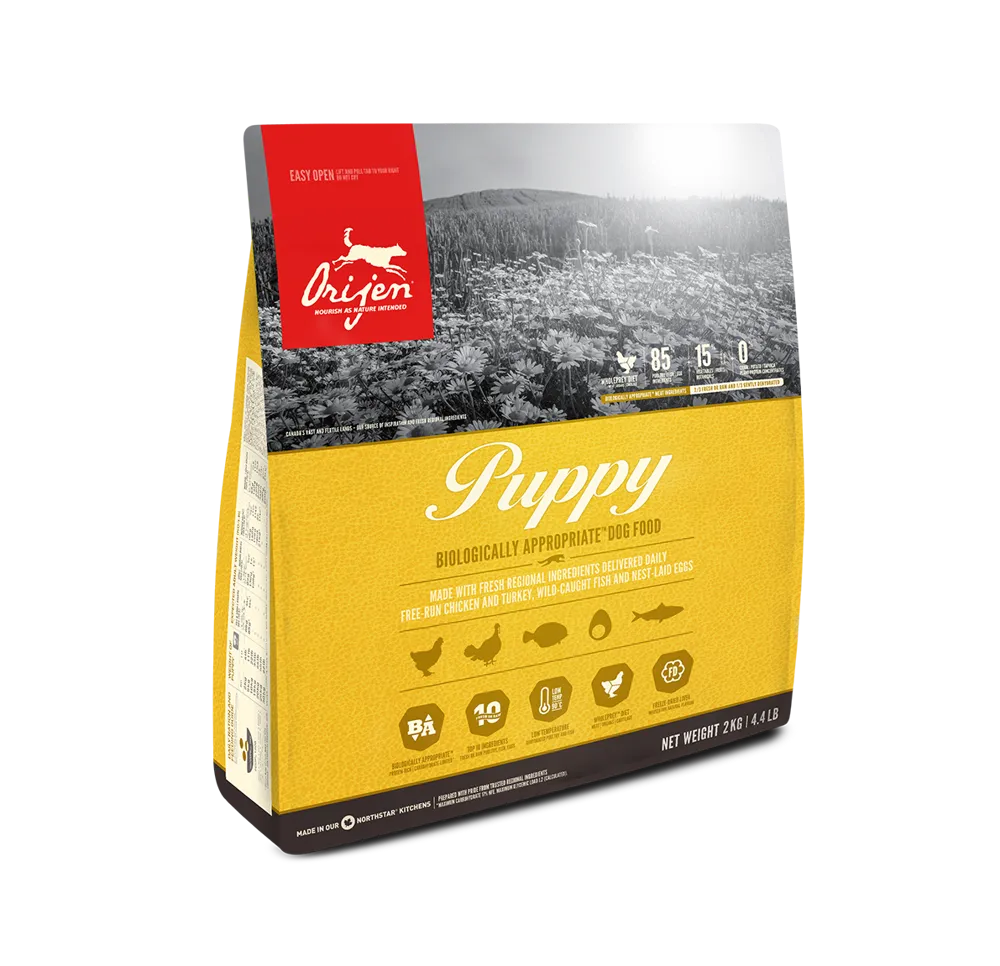 Orijen Dog Puppy 2kg to bezzbożowa karma stworzona z myślą o szczeniętach i młodych psach w fazie wzrostu, ważących od 1 do 35 kg. Ta naturalna sucha karma wspomaga zdrowy rozwój Twojego pupila, dostarczając mu składników odżywczych odpowiadających pierwotnej diecie psów.