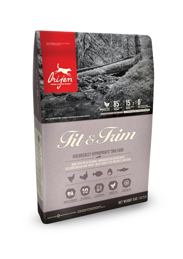 Orijen Fit & Trim Dog 6kg to bezglutenowa karma stworzona z myślą o dorosłych i starszych psach mało aktywnych oraz z nadwagą. Dzięki odpowiednio dobranym składnikom, wspiera ona utrzymanie prawidłowej wagi i energii, co jest kluczowe dla zdrowia Twojego pupila.