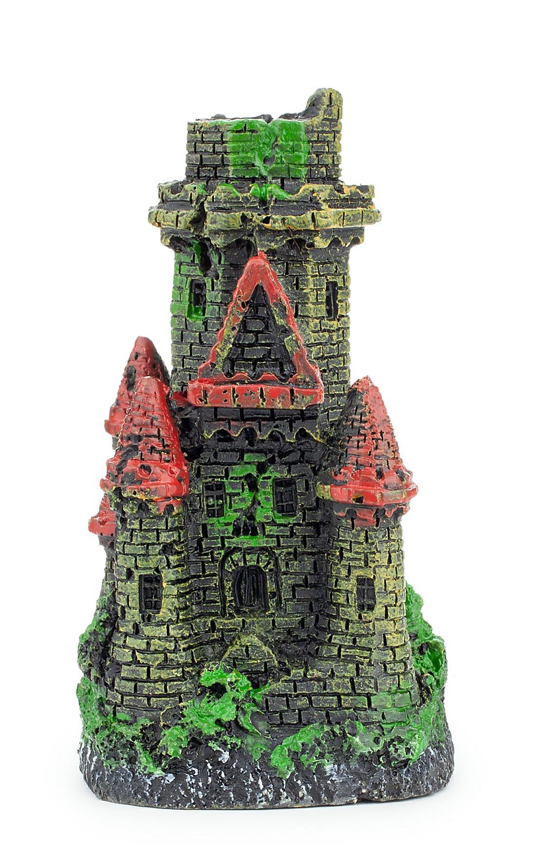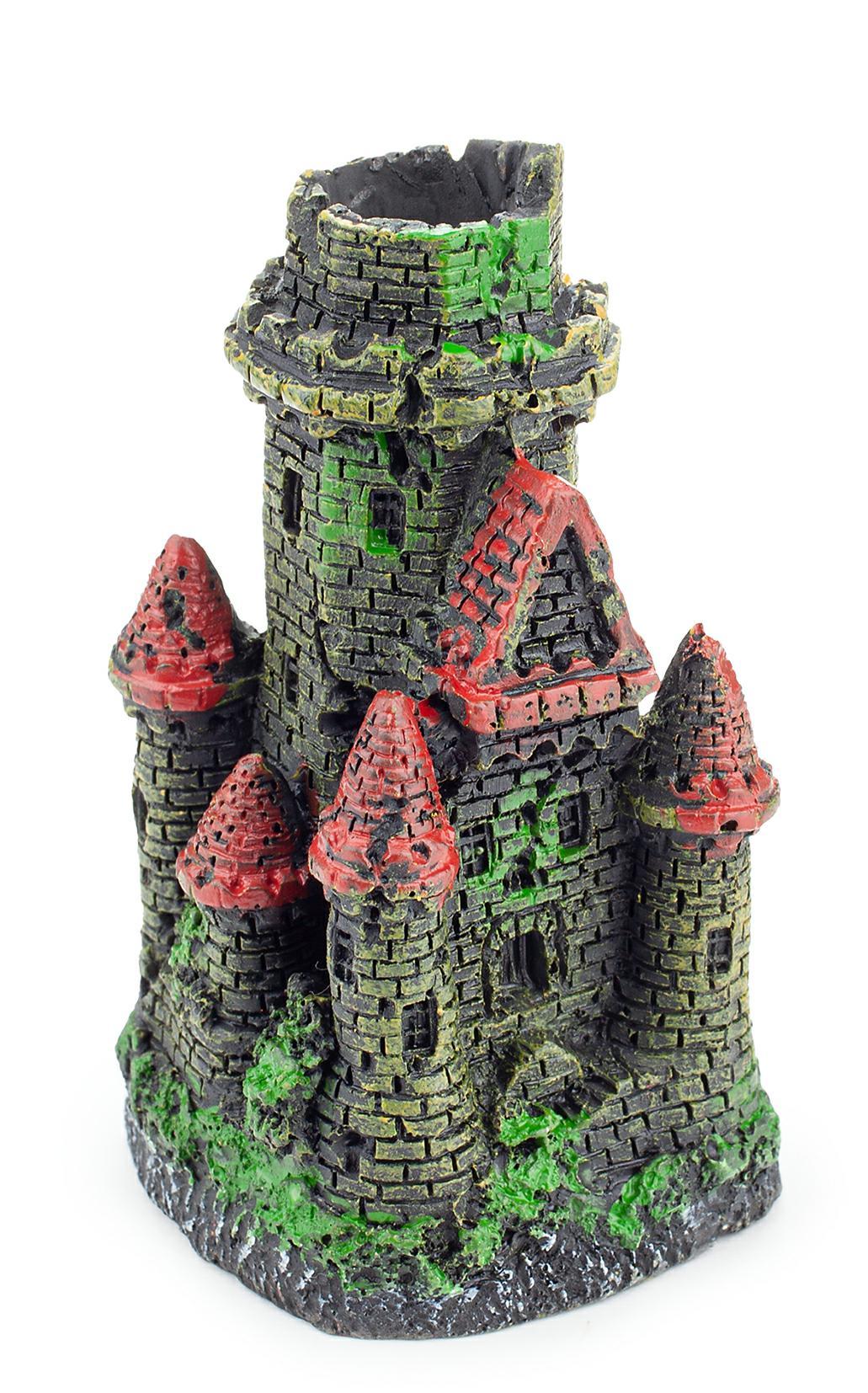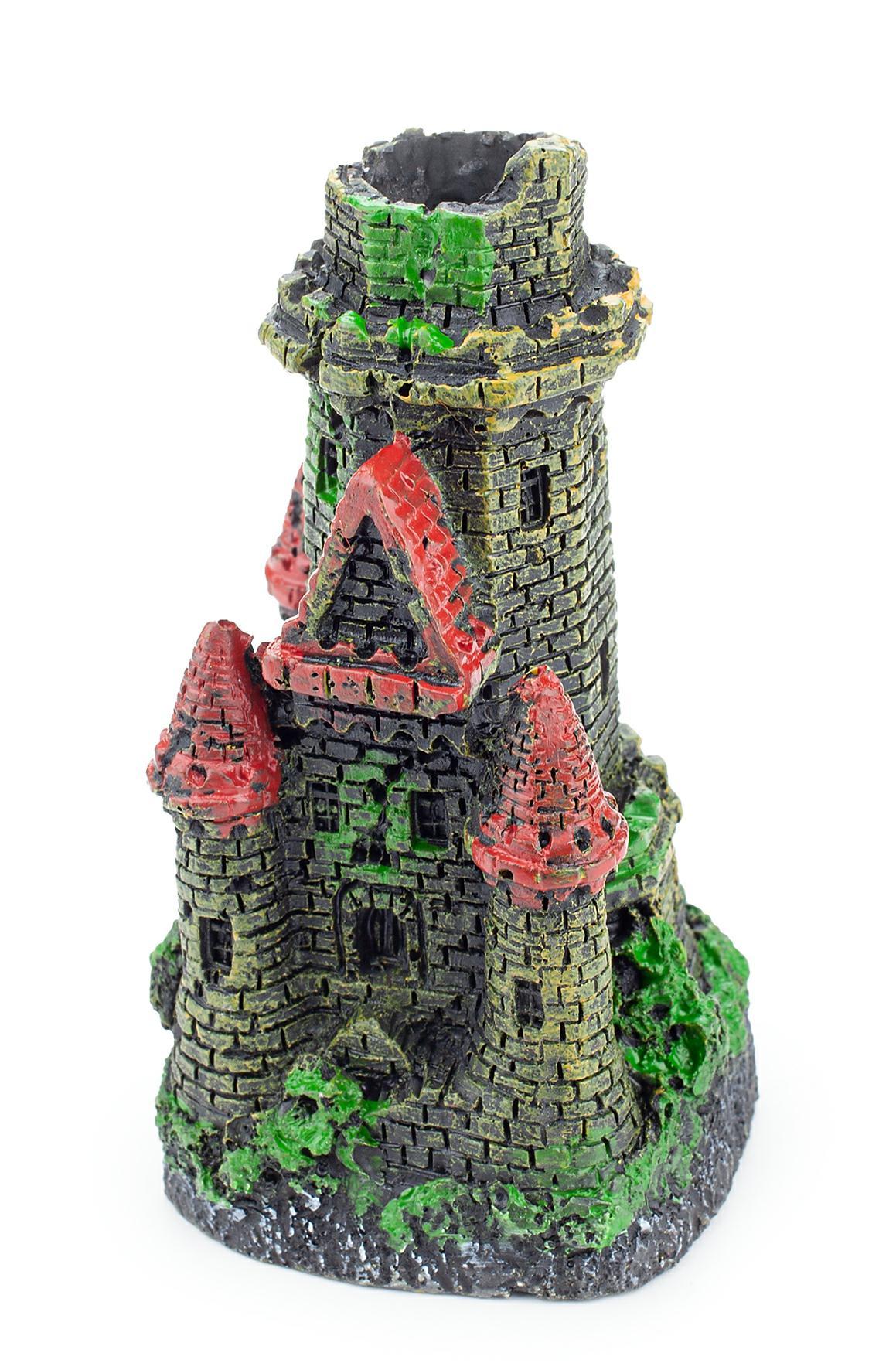 Rozmiar ozdoby wynosi 5 x 5 x 8 cm, co sprawia, że doskonale wpasuje się w różne zbiorniki. Zamek wykonany jest z poliestru, materiału, który jest bezpieczny dla ryb i innych zwierząt wodnych. Dodatkowo, łatwo tonie, co ułatwia jego umiejscowienie w akwarium.
