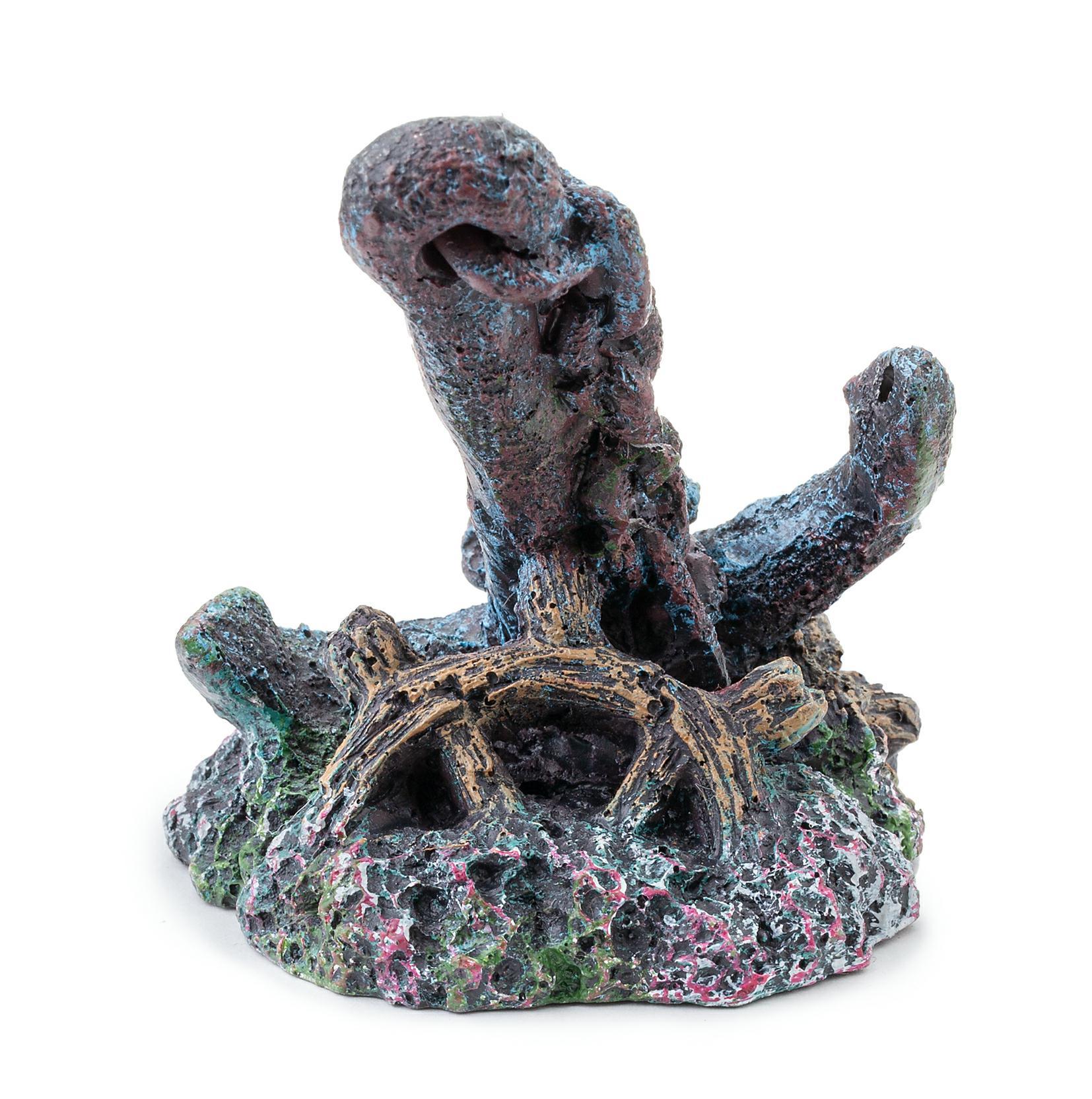 Wykonana z bezpiecznego dla ryb poliestru, ozdoba jest łatwo tonąca, co sprawia, że doskonale sprawdzi się w każdym akwarium. Jej wymiary wynoszą 7,5 x 6,5 x 7,5 cm, co czyni ją odpowiednią dla różnych aranżacji.