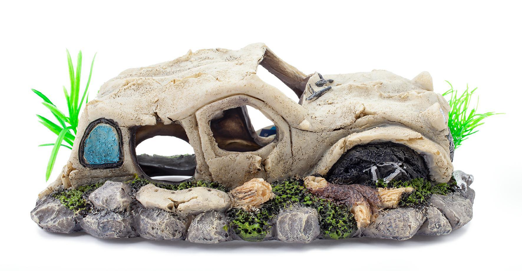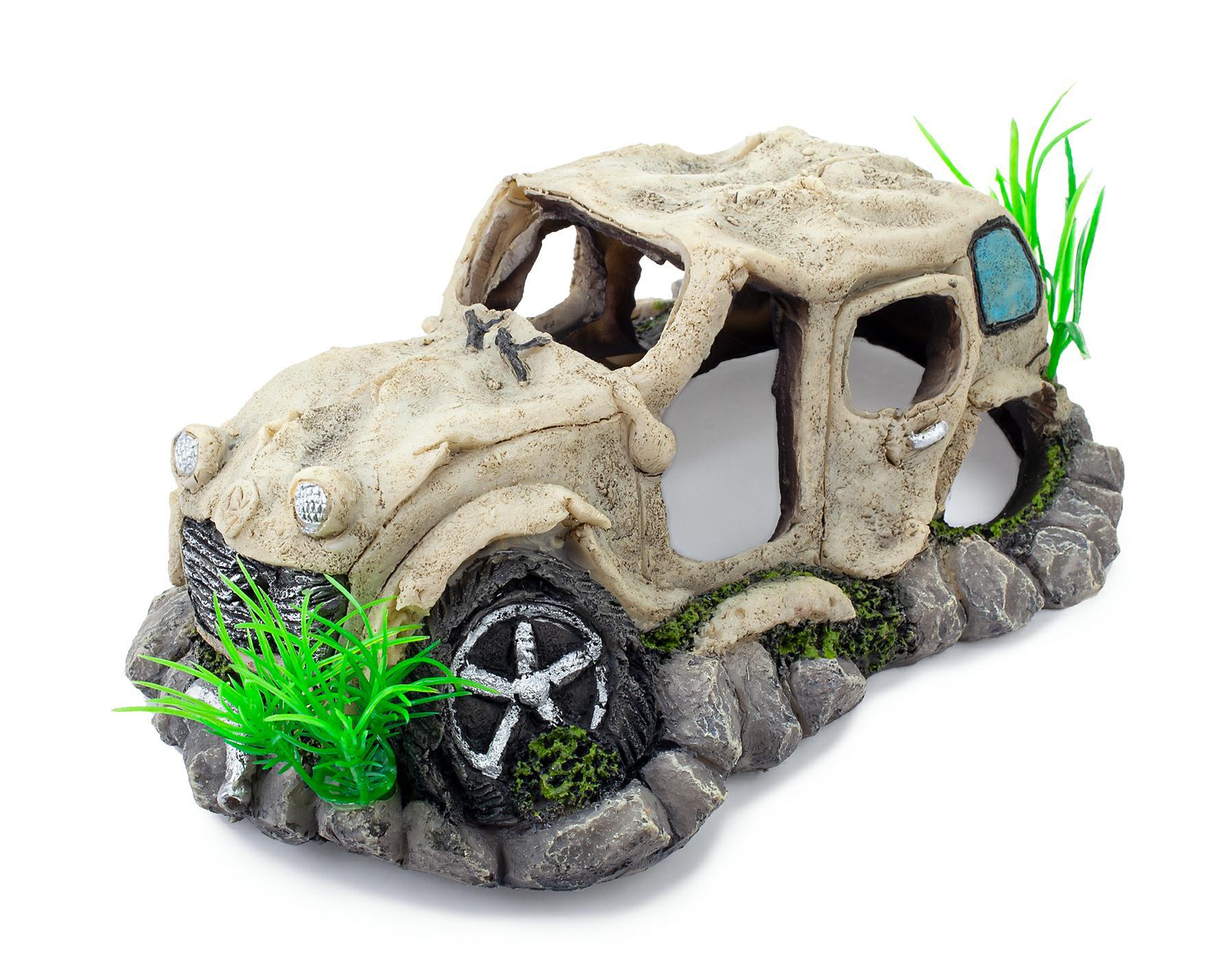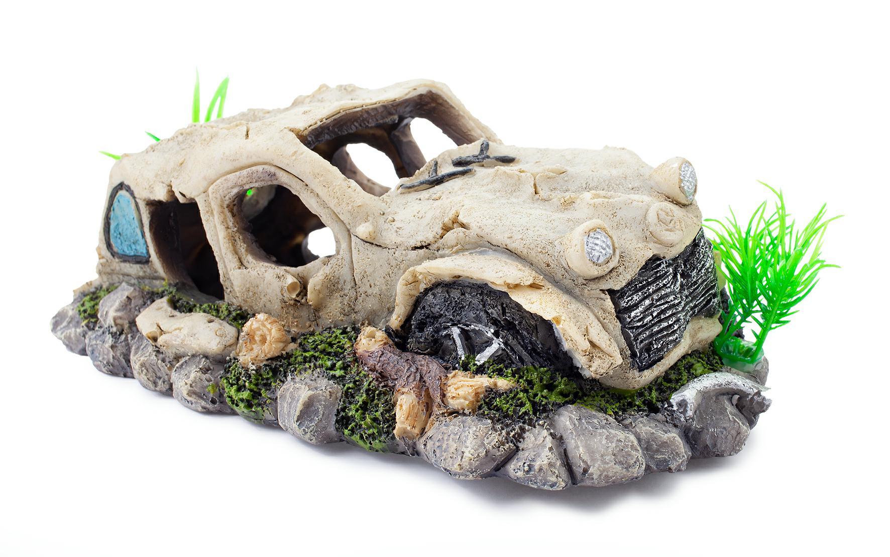 Dodaj wyjątkowy element do swojego akwarium z ozdobą akwariową w kształcie wraku auta. To doskonały sposób na urozmaicenie aranżacji, który zachwyci każdego miłośnika akwarystyki.