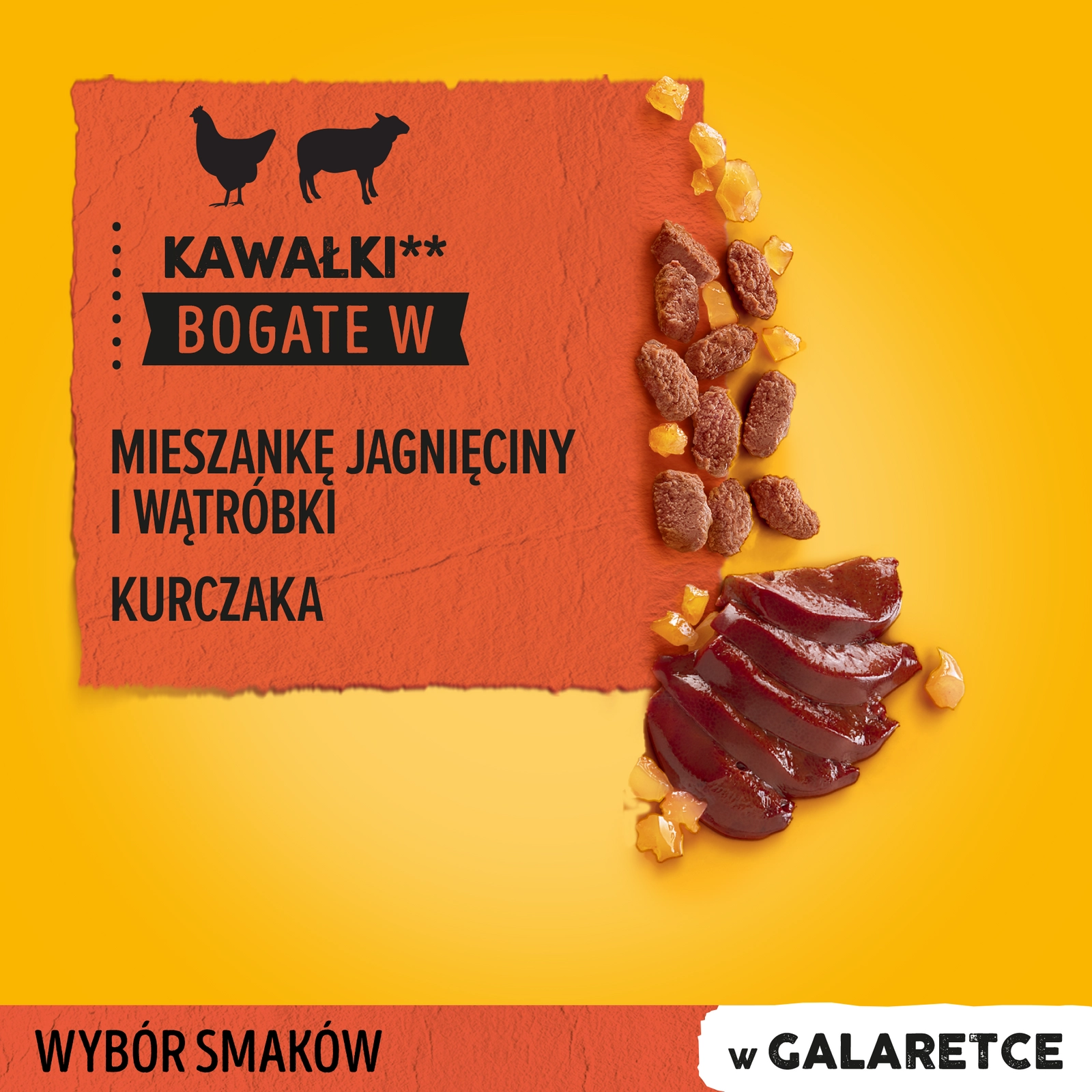 Pedigree to pełnoporcjowa karma stworzona z myślą o dorosłych psach małych i średnich ras. Zawiera wołowinę i drób w smakowitej galaretce, co sprawia, że jest atrakcyjna dla Twojego pupila. Dzięki tej karmie zapewniasz swojemu psu zbilansowane pożywienie, które wspiera jego witalność oraz siłę.