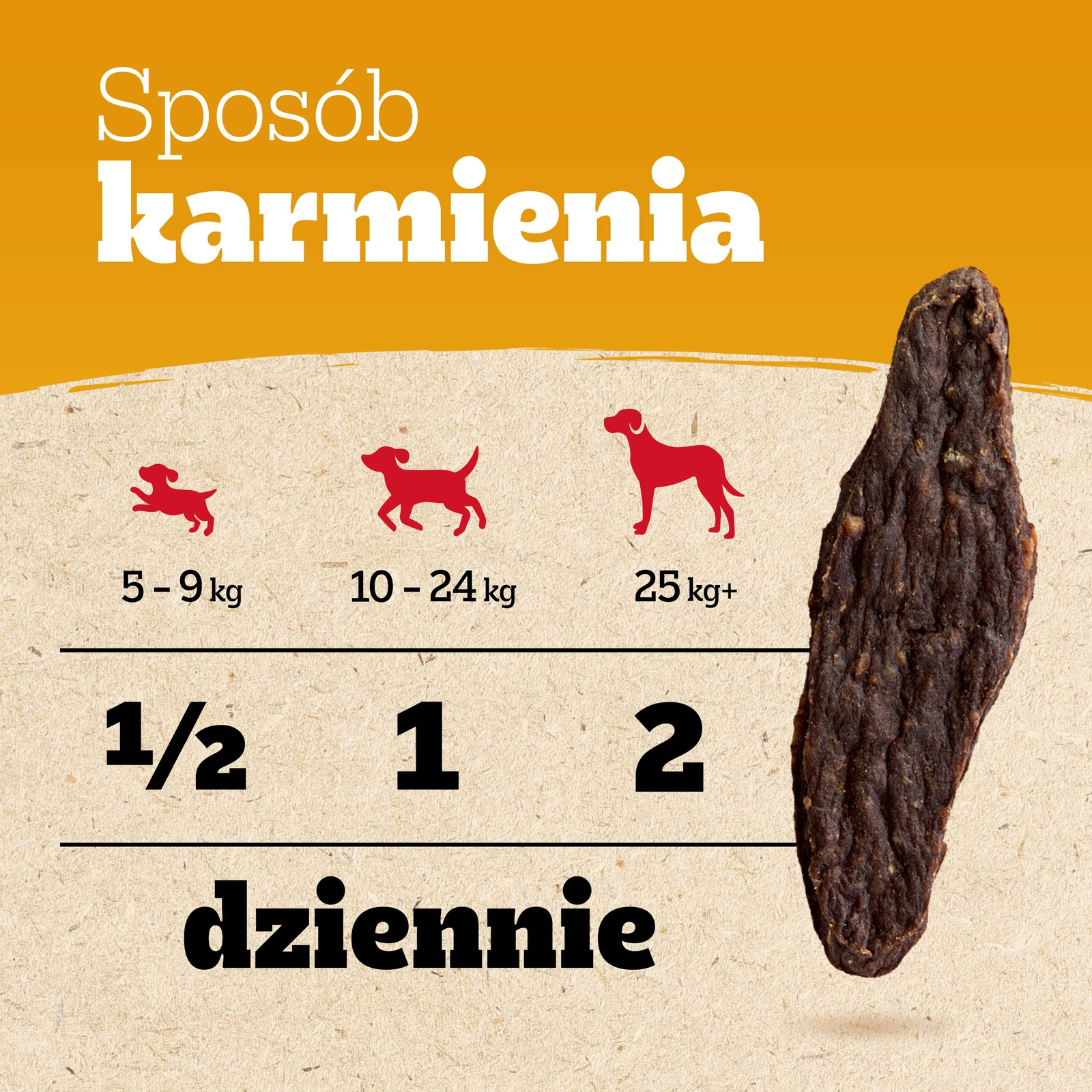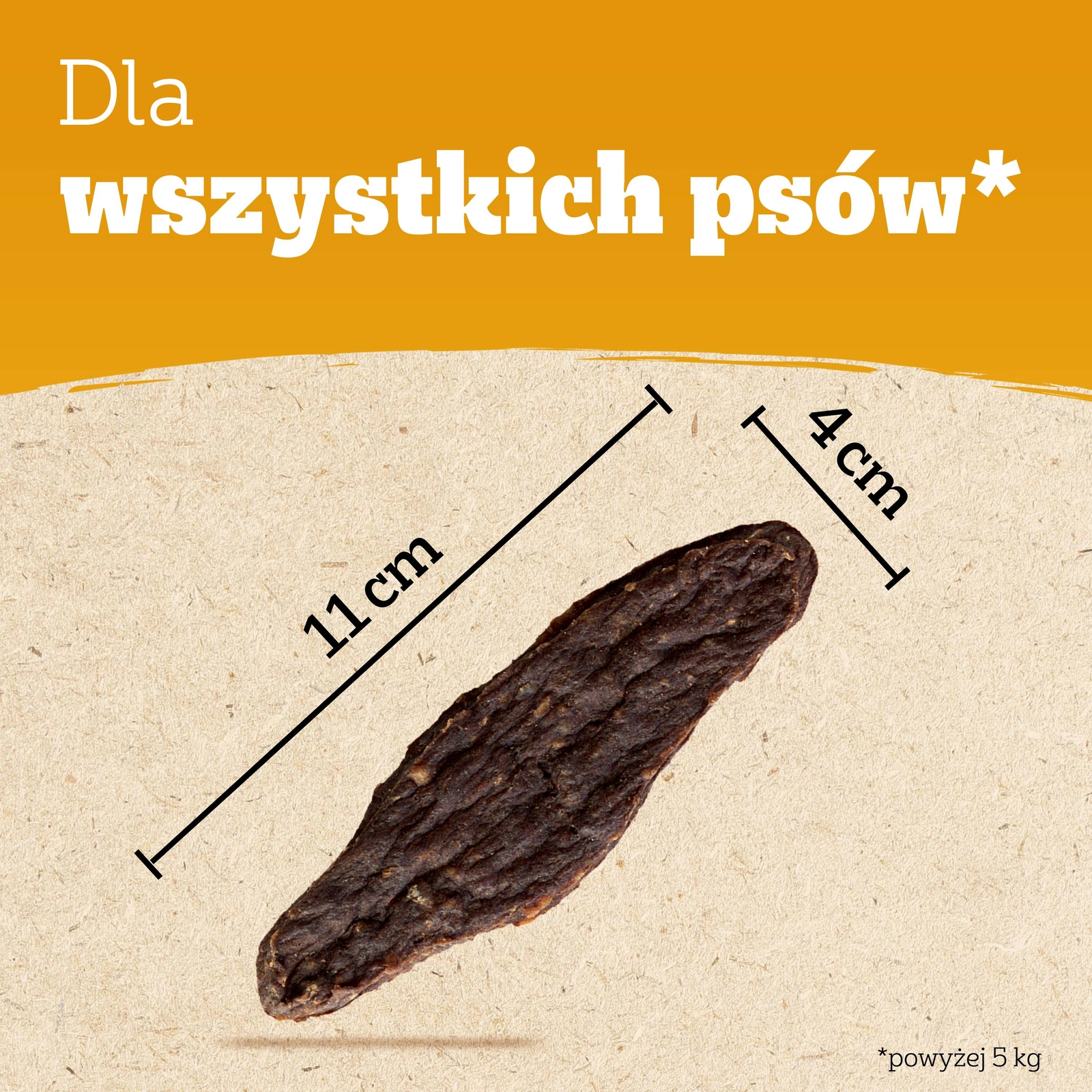 Małe psy np. jamnik: podawać nie więcej niż pół przysmaku na dzień.
