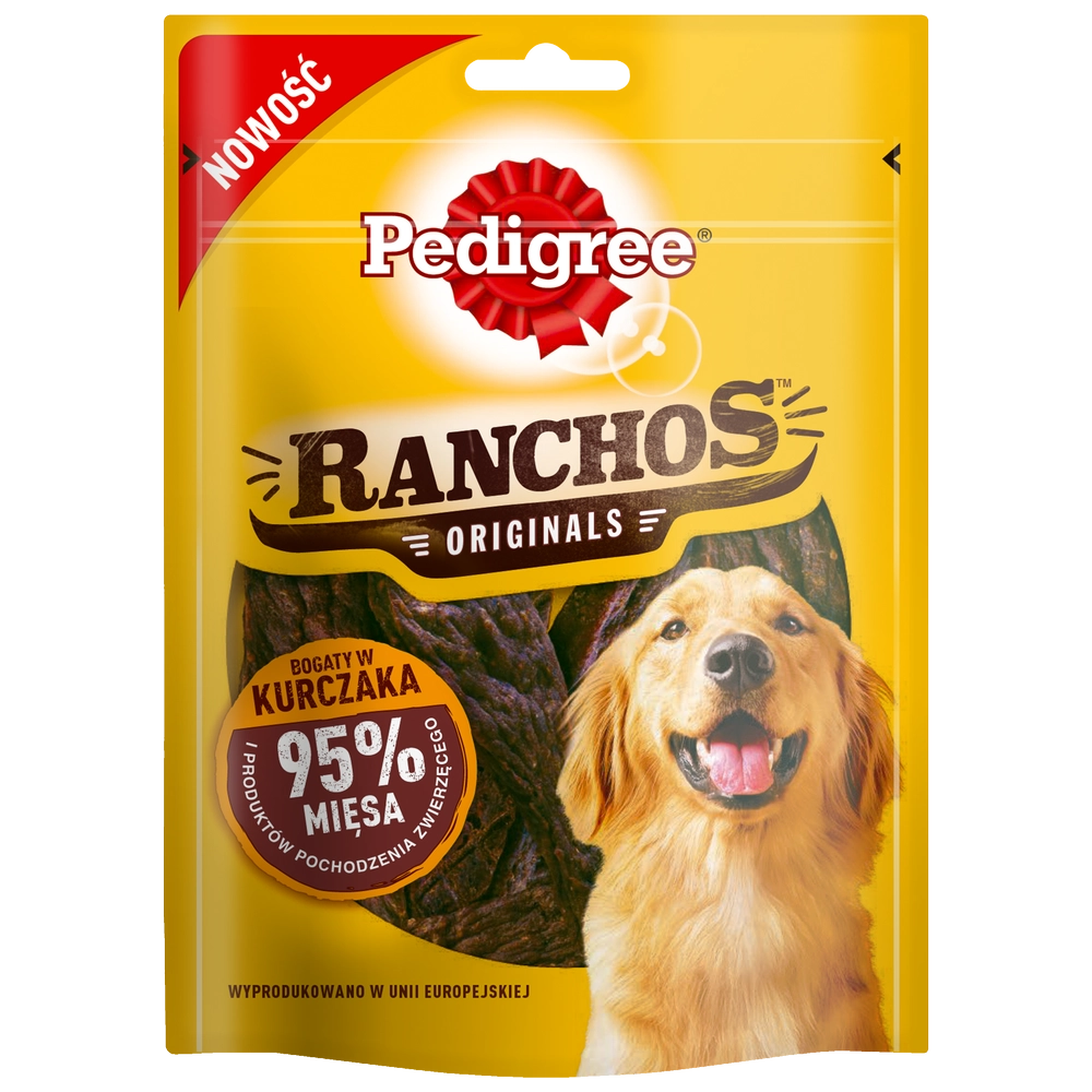 95% mięsa i produktów pochodzenia zwierzęcego to wyróżnik Pedigree. Ranchos Originals z Kurczakiem. Ten przysmak jest wyjątkowo delikatny i pyszny, starannie suszony, a do tego zwraca uwagę pupila swoim smakiem i zapachem, spełniając jego naturalne potrzeby. Każda porcja Pedigree Ranchos Originals z Kurczakiem to odpowiednio dobrane składniki w formie wygodnej przekąski, idealnej podczas spaceru czy zabawy z psem.