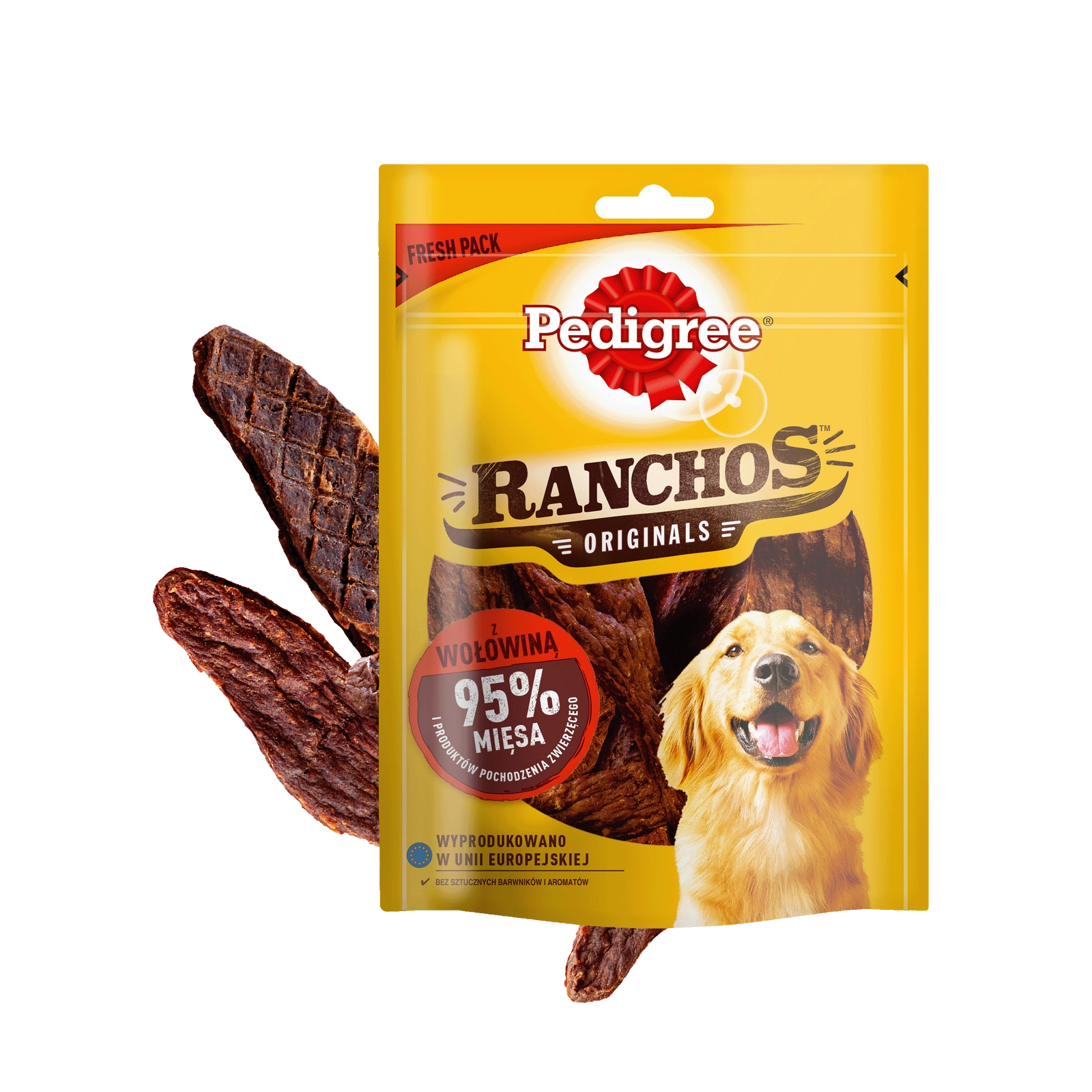 95% mięsa i produktów pochodzenia zwierzęcego to wyróżnik Pedigree Ranchos Originals z wołowiną. Ten przysmak jest wyjątkowo delikatny i pyszny, starannie suszony, a do tego zwraca uwagę pupila swoim smakiem i zapachem, spełniając jego naturalne potrzeby. Każda porcja Pedigree Ranchos Originals z wołowiną to odpowiednio dobrane składniki w formie wygodnej przekąski, idealnej podczas spaceru czy zabawy z psem.