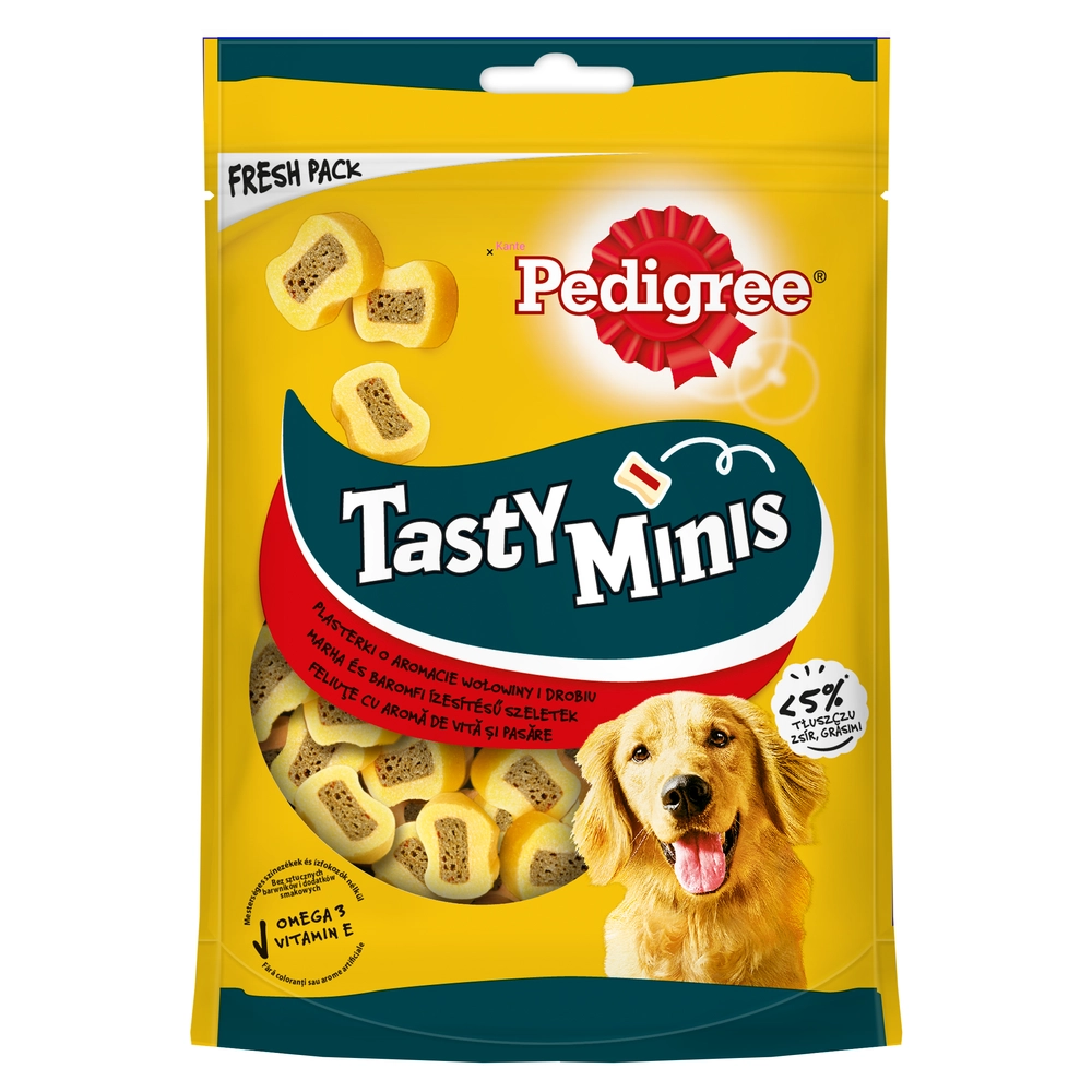 Pedigree Tasty Bites Chewy Slices to idealne uzupełnienie codziennej diety Twojego psa, które poprawia stan kości, skóry i sierści. Ten przysmak zadowoli apetyt każdego pupila. Pedigree Tasty Bites idealnie sprawdza się podczas długich spacerów lub jako nagroda za prawidłowo wykonane polecenia.