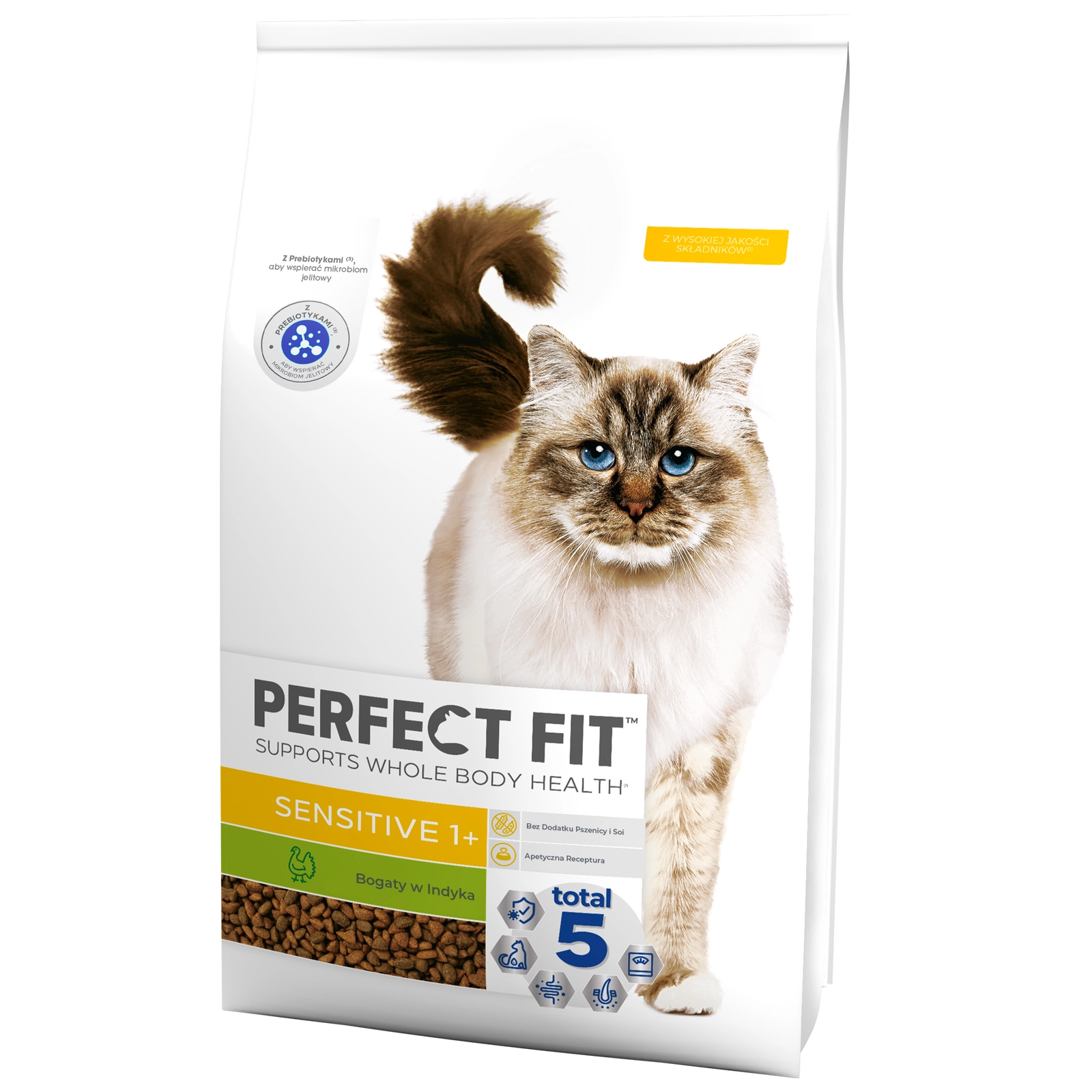 Sucha karma Perfect Fit Sensitive z indykiem to pełnowartościowy pokarm stworzony z myślą o dorosłych kotach powyżej 1 roku życia, które mają wrażliwy układ trawienny. Dzięki unikalnej recepturze, opracowanej przez ekspertów, karma ta zaspokaja 5 podstawowych potrzeb zdrowotnych kotów. Dostosowana do indywidualnych potrzeb, pomaga w codziennej trosce o Twojego pupila.