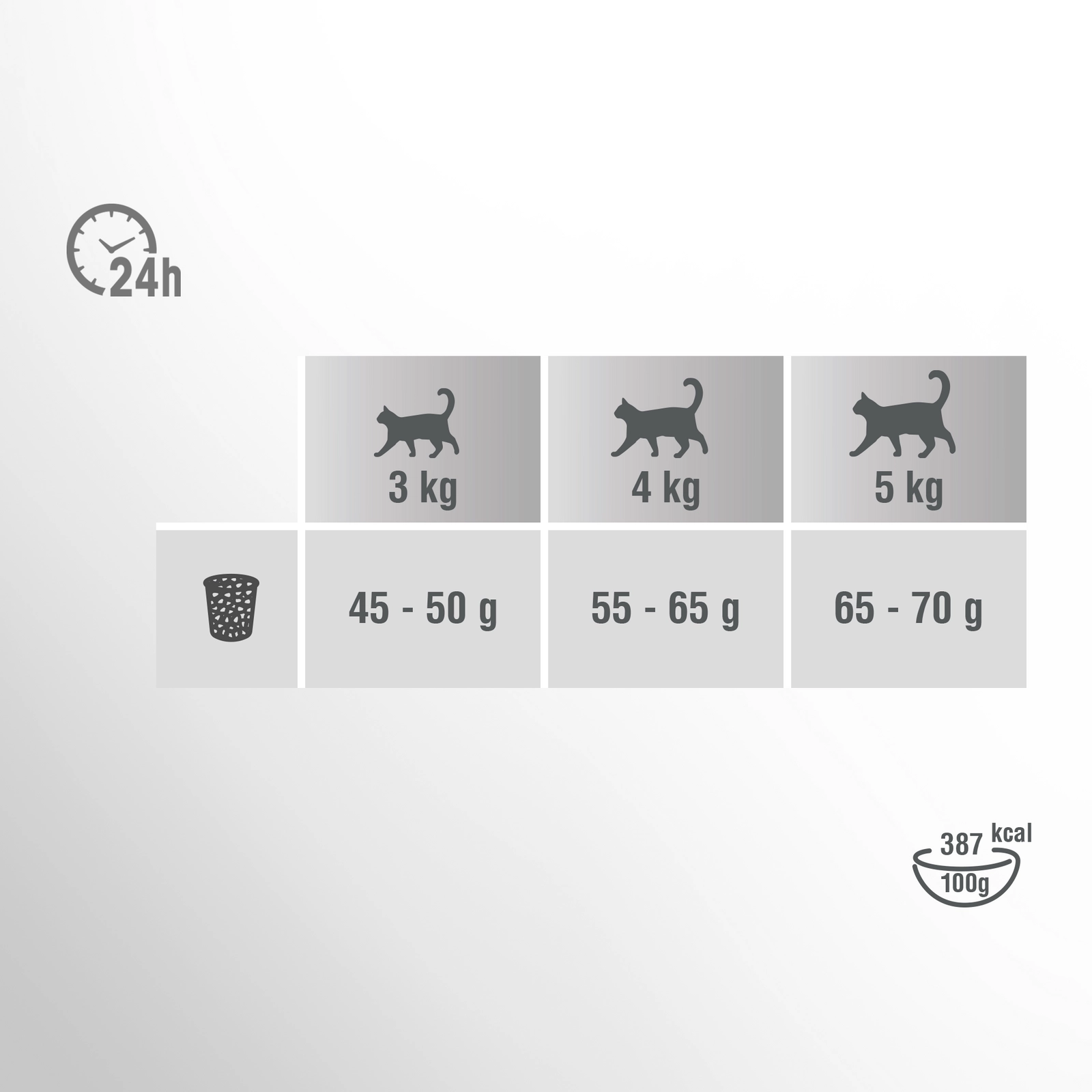 Zapewnij kotu świeżą wodę do picia i dostosuj ilość jedzenia w zależności od jego potrzeb. Karma zawiera prebiotyki, wspierające prawidłową florę bakteryjną jelit. Nie zawiera pszenicy i soi, które mogą powodować problemy trawienne. Dodatkowo, wysoka zawartość białka oraz niska zawartość węglowodanów odpowiadają naturalnym preferencjom kotów.