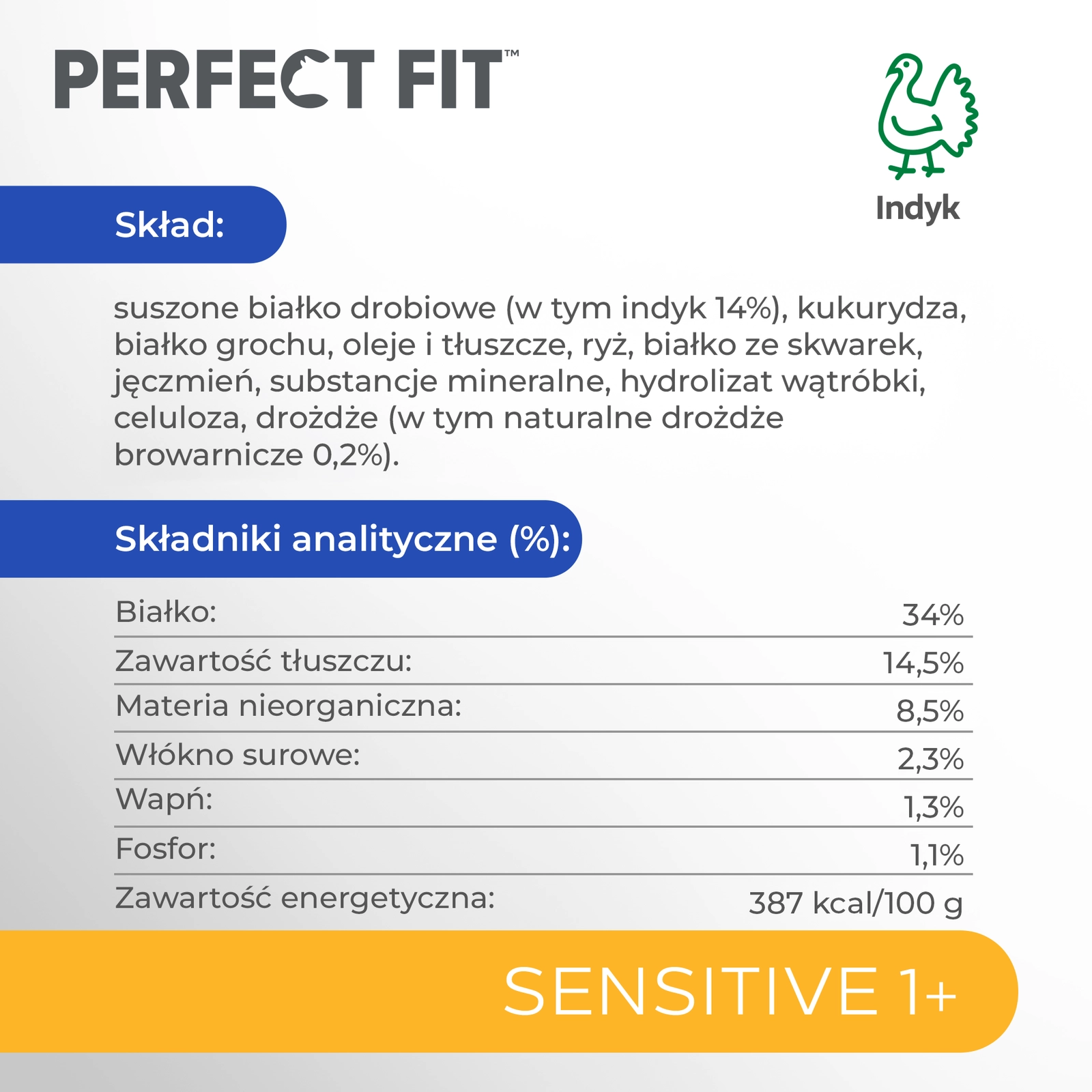PERFECT FIT Sensitive 1+ Z Indykiem 7kg