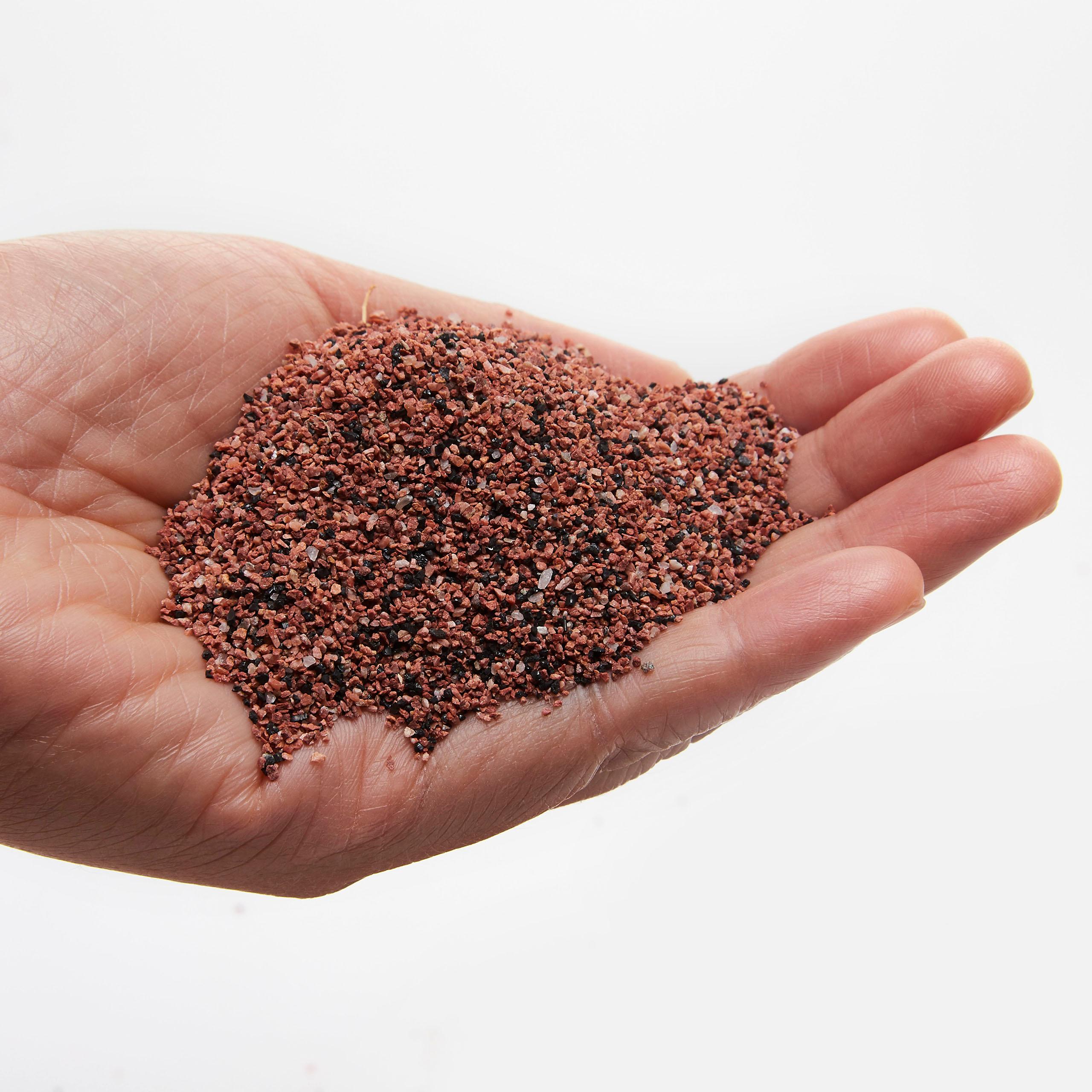 Piasek do terrarium czarno-czerwony 5 kg (0.8–1.0 mm) Naturalny, średnioziarnisty piasek o unikalnym czarno-czerwonym zabarwieniu i frakcji 0.8–1.0 mm. Stanowi wysokiej jakości podłoże przeznaczone do terrariów z gatunkami pustynnymi i sucholubnymi, zarówno gadami, jak i bezkręgowcami. Piasek został starannie wypłukany i oczyszczony przed zapakowaniem, co eliminuje ryzyko pylenia oraz obecności zanieczyszczeń organicznych. Dzięki temu zapewnia bezpieczne środowisko dla zwierząt, minimalizując ryzyko infekcji i podrażnień dróg oddechowych. Naturalna struktura i kolorystyka podłoża doskonale odwzorowują warunki panujące w pustynnym środowisku, stymulując naturalne zachowania zwierząt, takie jak kopanie, rycie czy tworzenie kryjówek. Piasek można stosować jako główne podłoże lub jako dodatek do substratów kokosowych i glinianych w celu poprawy ich właściwości fizycznych i wizualnych. Zastosowanie Szczególnie polecany dla gatunków wymagających niskiej wilgotności w zbiorniku, takich jak: Bezkręgowce: np. Platymeris spp., Blepharopsis mendica, Tarachodula pantherina Gady: np. Pogona vitticeps (agama brodata), Eublepharis macularius (gekon lamparci), Paroedura picta, Uromastyx spp., Hemidactylus imbricatus, Spalerosophis diadema, Varanus acanthurus (waran kolczastoogonowy) Pojemność: 5 kg Kolor: czarno-czerwony Frakcja: 0.8 - 1.0 mm Przeznaczenie: Dedykowane dla terrariów pustynnych oraz stepowych