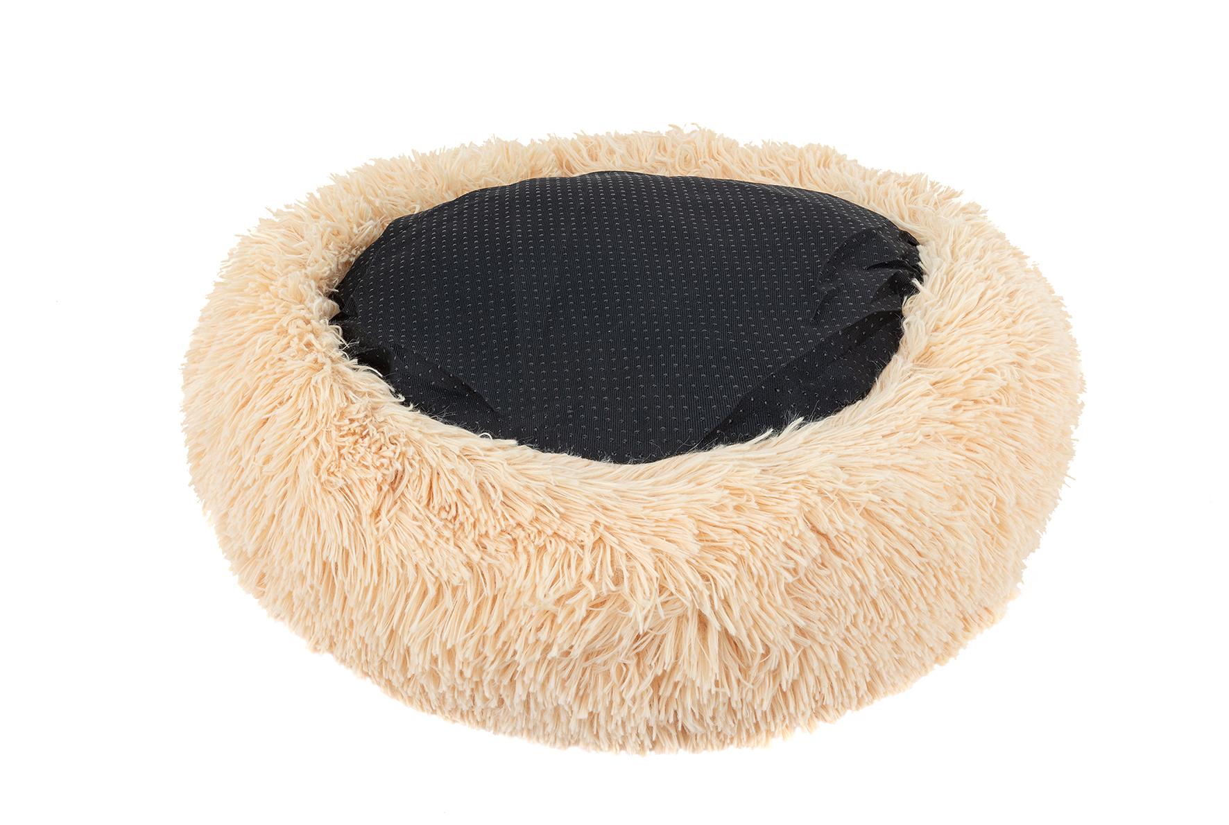 Wnętrze pluszowego legowiska jest wypełnione wysokiej jakości kulkami silikonowymi, których właściwości są podobne do naturalnego puchu. Pokryte zostało wytrzymałym materiałem futerkowym, a jego spód jest antypoślizgowy i wodoodporny. Legowisko można prać w pralce w temperaturze 30 stopni. Dostępne jest w 3 atrakcyjnych kolorach, tak aby zaspokoić nawet najbardziej wymagające gusta.