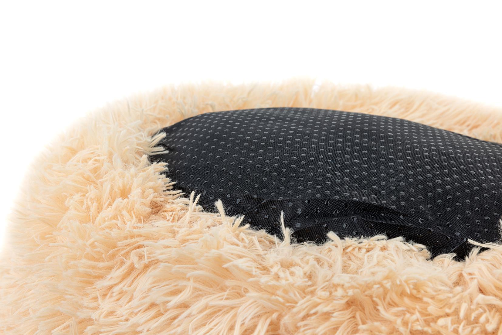Wnętrze pluszowego legowiska jest wypełnione wysokiej jakości kulkami silikonowymi, których właściwości są podobne do naturalnego puchu. Pokryte zostało wytrzymałym materiałem futerkowym, a jego spód jest antypoślizgowy i wodoodporny. Legowisko można prać w pralce w temperaturze 30 stopni. Dostępne jest w 3 atrakcyjnych kolorach, tak aby zaspokoić nawet najbardziej wymagające gusta.