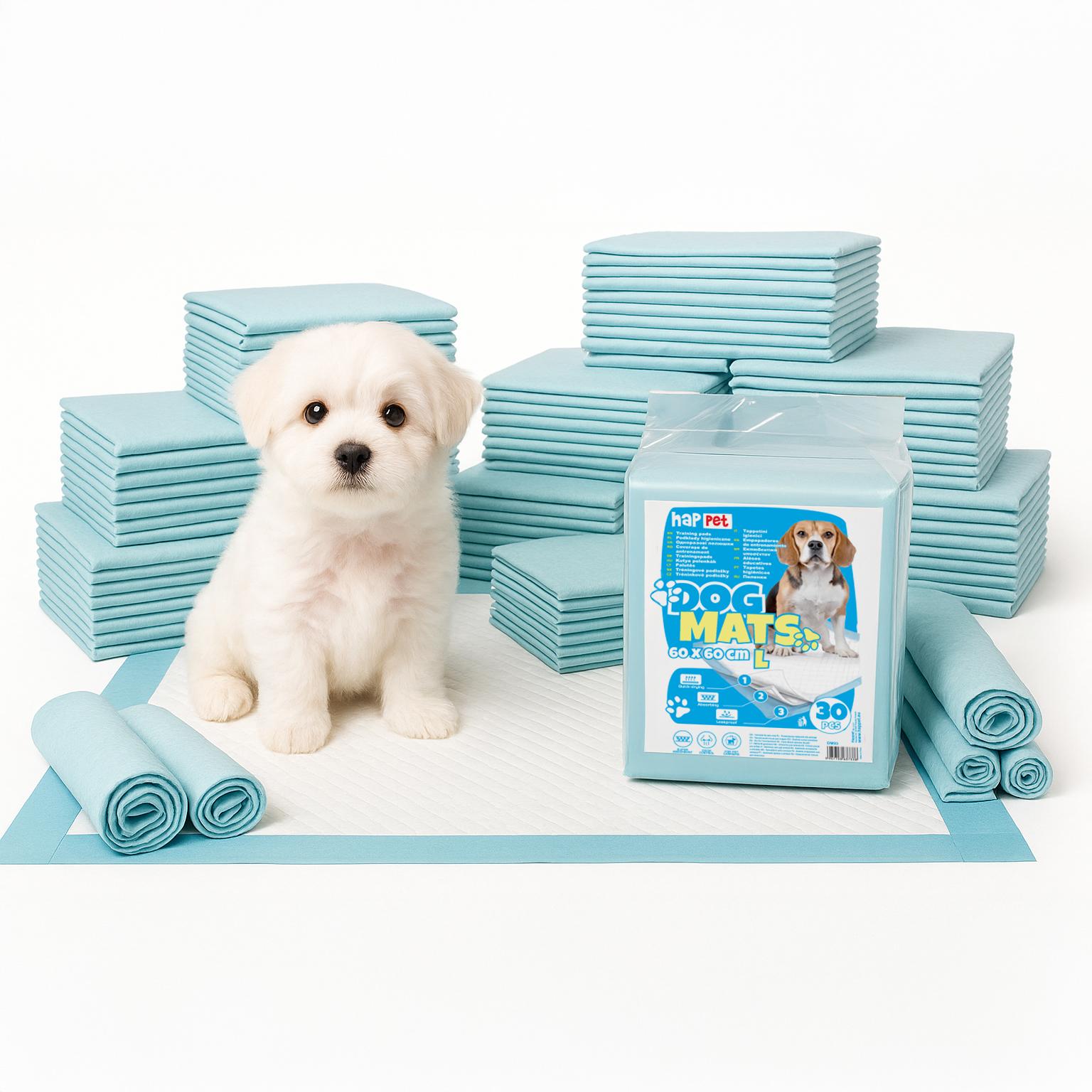 Podkłady higieniczne Happet to doskonałe rozwiązanie dla właścicieli psów, które przydają się zarówno w domu, jak i w podróży. Ich chłonność sprawia, że są idealne do nauki czystości dla szczeniąt oraz dla starszych i schorowanych zwierząt. Można je łatwo ułożyć na podłodze lub używać jako wyściółkę w transporterach.