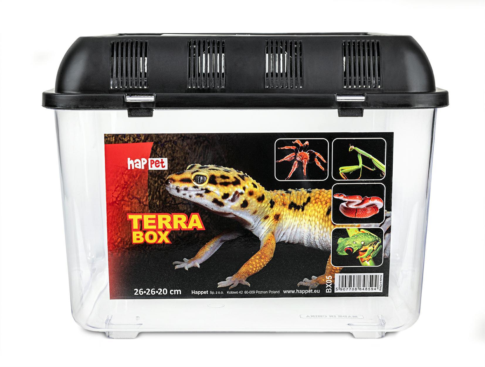 Pojemnik TERRA BOX to lekki i poręczny wybór dla miłośników hodowli. Wykonany z przezroczystego plastiku, idealnie nadaje się do transportu i przechowywania niewielkich gadów, płazów, pajęczaków, gryzoni oraz owadów karmowych.