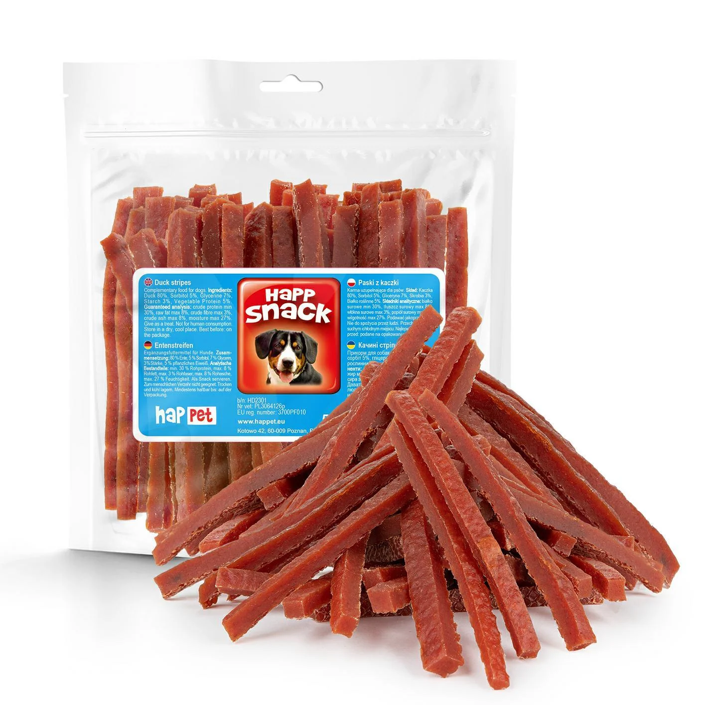 GC02 Paski z kaczki 500g • Kod: GC02 • EAN: 5907708646897 • Kategoria: Snaki - HAPP Snack. Zamów z odbiorem