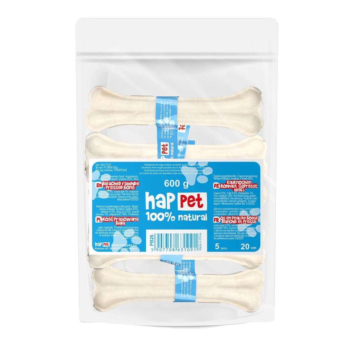 Kość prasowana Happet PB26 biała 20cm 5szt.