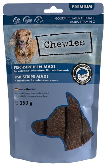 Chewies Maxi Fish Strips Ryba morska 150g • Kod: mls-18096 • EAN: 4260379448513 • Kategoria: Przysmaki dla psów. Dodaj do koszyka i sprawdź rabat