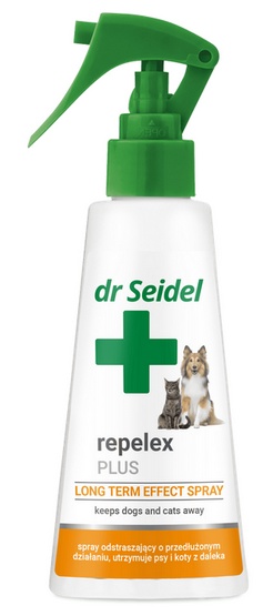 Dr Seidel Repelex Plus - Płyn utrzymujący psy i koty z daleka - spray 100ml • Kod: mls-4558 • EAN: 5901742000257 • Kategoria: Preparaty i akcesoria do utrzymania czystości u psów. Kup wygodnie online