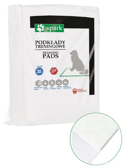 Spark Podkłady treningowe 45x60 30szt/op • Kod: mls-19969 • EAN: 5905279944442 • Kategoria: Preparaty i akcesoria do utrzymania czystości u psów. Zamów bez zwłoki