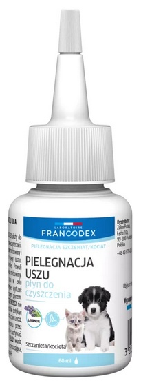 Francodex Płyn do uszu dla kociąt i szczeniąt 60ml [FR179136] • Kod: mls-13251 • EAN: 3283021791363 • Kategoria: Produkty do pielęgnacji oczu i uszu dla psów. Wybierz ilość i kup